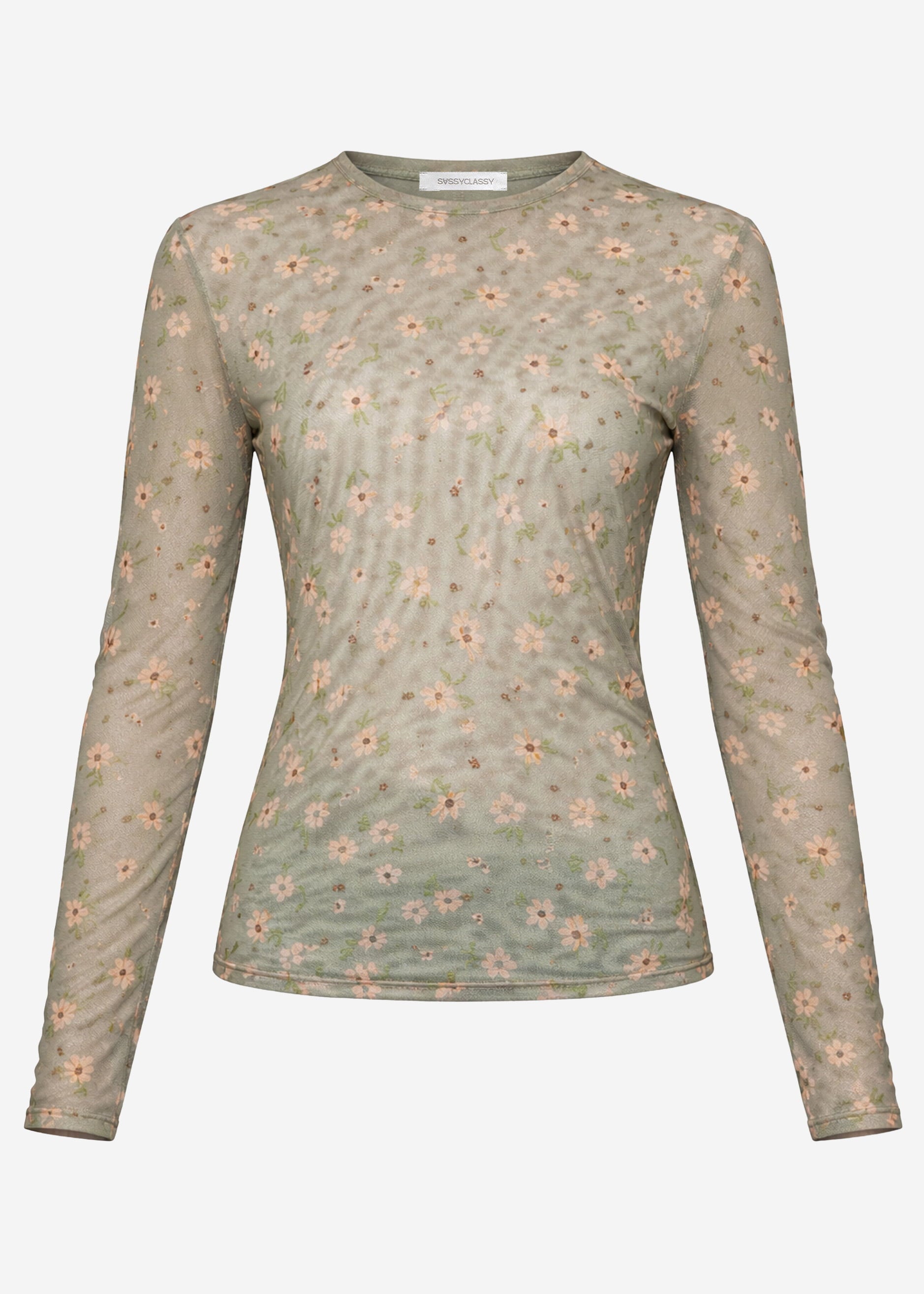 Co-creation piadorby x SASSYCLASSY: Mesh long-sleeved shirt with floral print in green