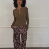 Ribbed knit long-sleeved top in brown with a striking cut-out detail at the neckline. Figure-hugging cut with a round neckline. A minimalist design with a modern twist – perfect for versatile everyday looks.