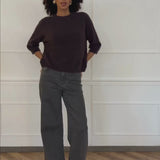 This dark brown knit top combines timeless elegance with cozy comfort. It features a round neckline and half-length sleeves made from soft knit fabric.