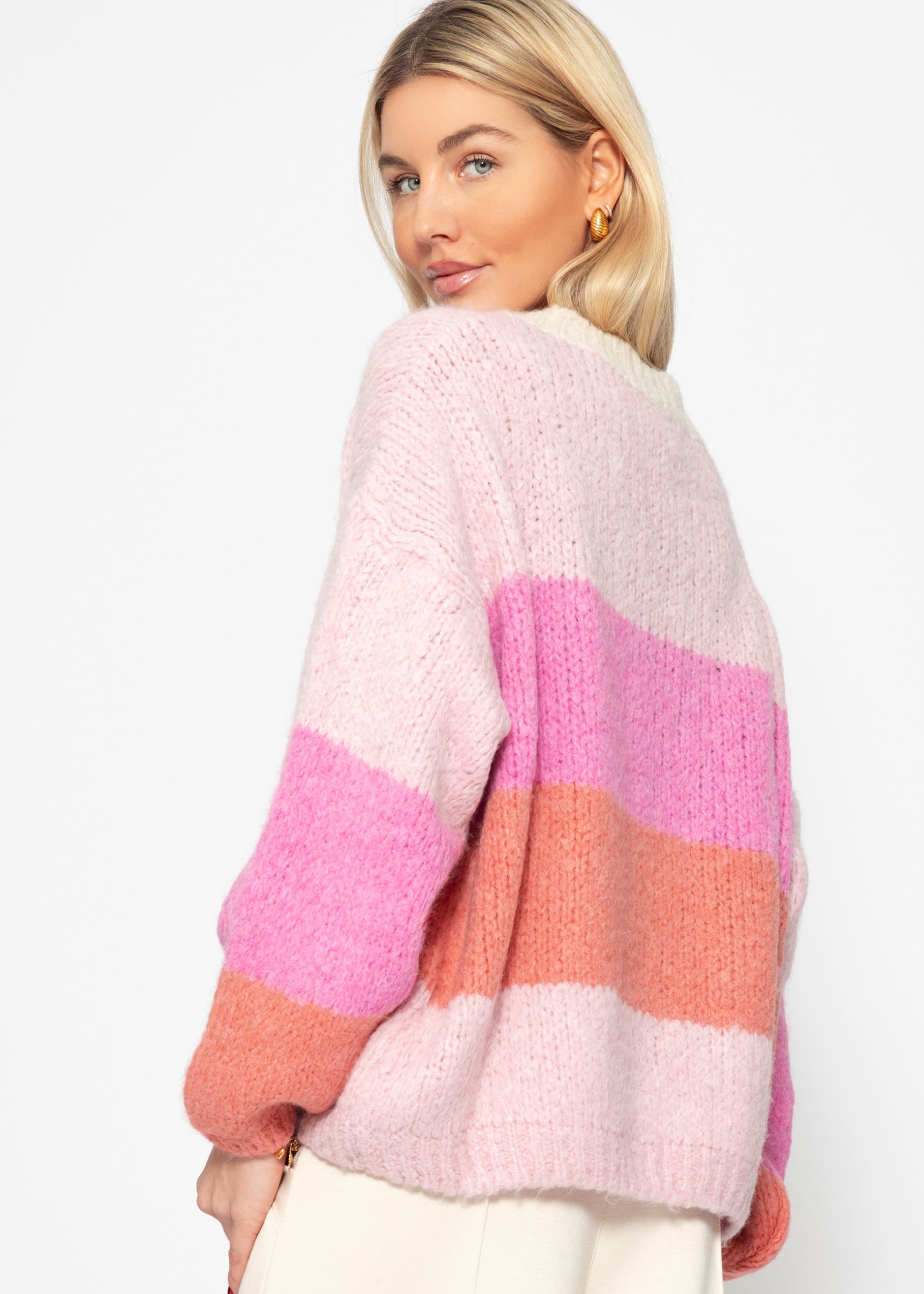 This striped knit sweater in delicate pastel shades combines comfort and style. The soft, chunky knit fabric provides a comfortable feel and keeps you cozy and warm on cooler days. The color-coordinated block stripes give the sweater a feminine yet modern look. The loose cut with dropped shoulders ensures a relaxed fit, while the classic round neck and ribbed cuffs and hem perfectly round off the look.