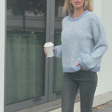 This colorful knit sweater combines comfort and style in a casual design. The eye-catching striped pattern creates a fresh, modern look and adds a cheerful touch to any outfit. The sweater is made from soft knit fabric, is comfortable to wear and keeps you warm at the same time. The wide round neckline and loose fit with slightly dropped shoulders emphasize the relaxed character, while the ribbed cuffs at the neck, hem and sleeves provide a harmonious finish.