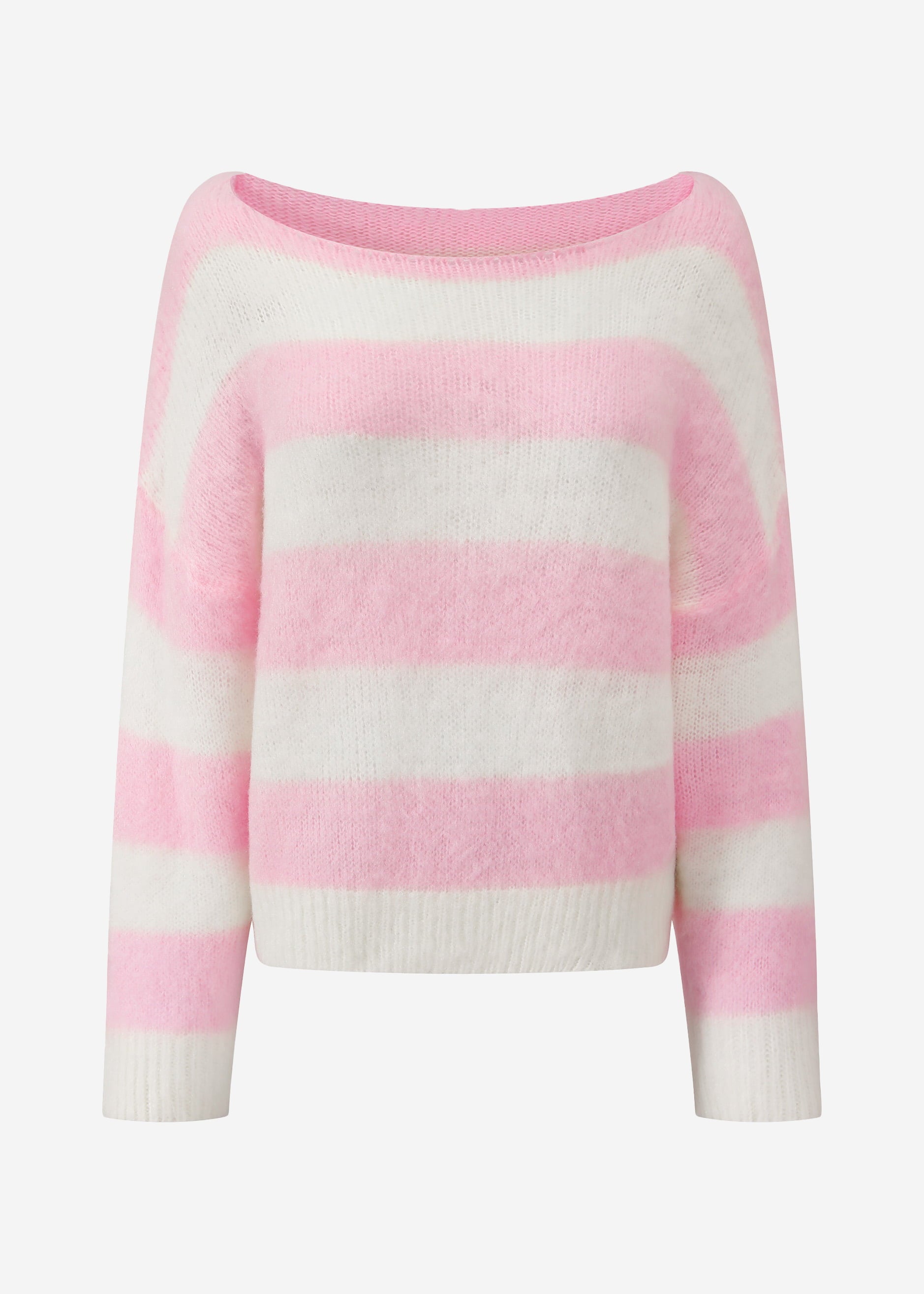 This sweater combines exceptional comfort with a sophisticated design. The flattering boat neck adds a special touch, while the wide horizontal stripes create a modern, fresh look. Fluffy brushed stripes alternate with regular-knit stripes, giving the sweater an exciting texture and unique character. Thanks to its loose fit with slightly dropped shoulders, it's the ideal companion for cozy everyday outfits and can also be stylishly combined over a blouse. A versatile favorite that perfectly combines warmth, comfort, and fashionable chic.