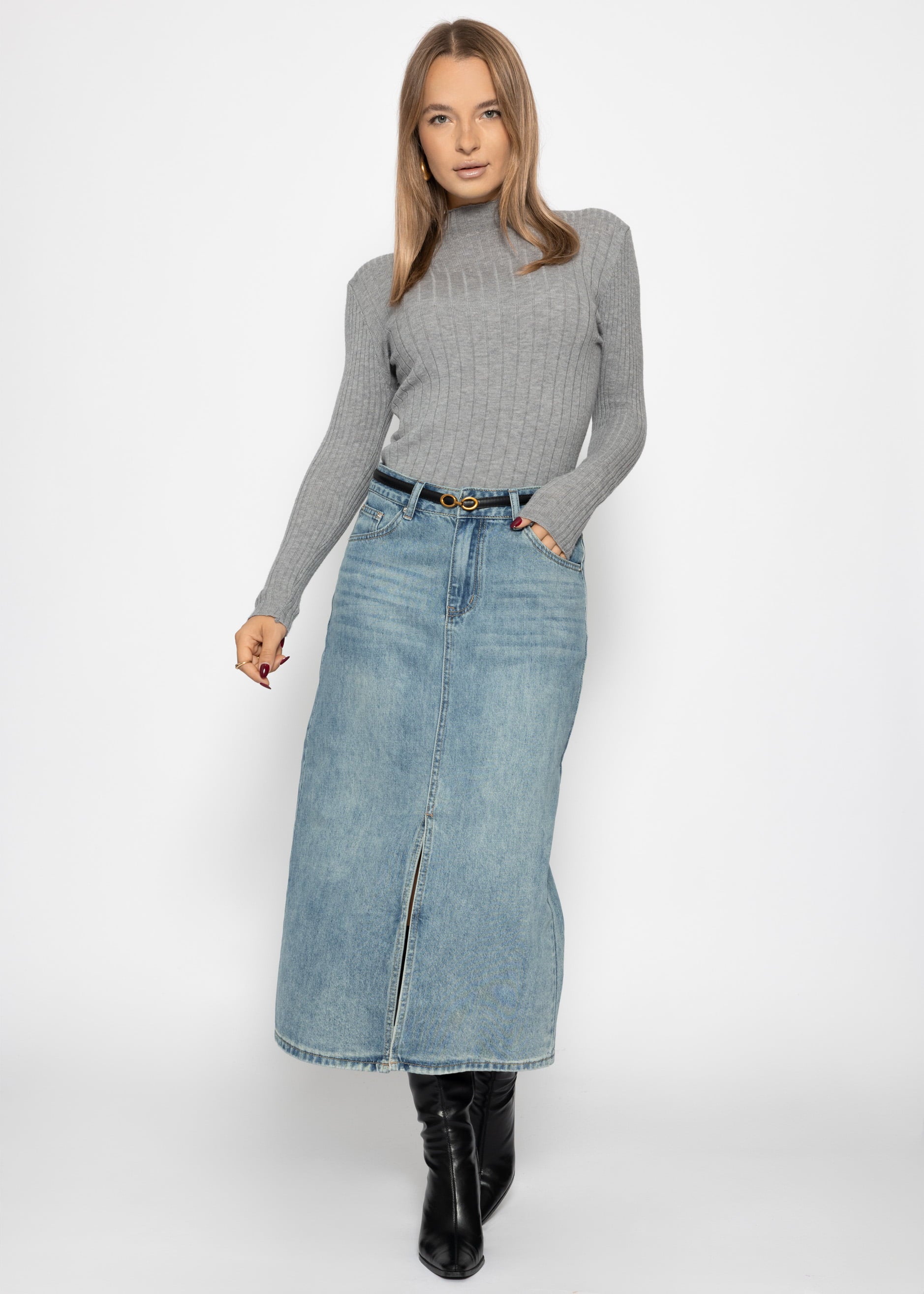 This jeans rock combines traditional denim style with modern elements. The 5-pocket style, the button and zipper as well as the belt loops give the model classic, functional details, while the high waist and the midi length reflect current trends. The striking slot on the front ensures freedom of movement and creates a playful note. This versatile skirt can be perfectly combined with a nice top and slipper for a casual everyday look.