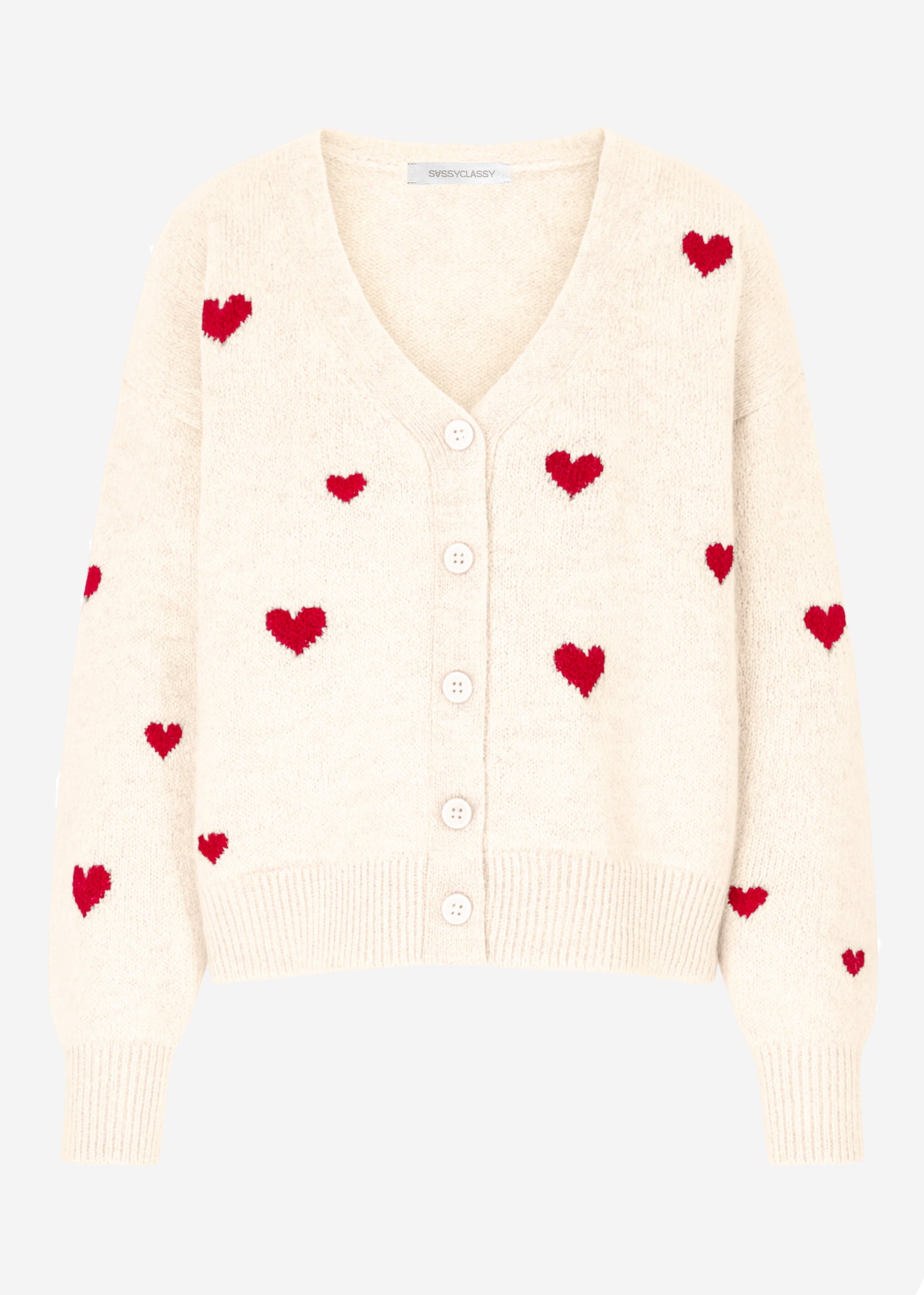 Cardigan with red hearts in off-white