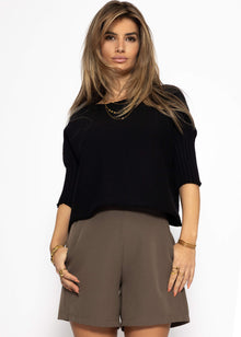 Short-sleeved crop sweater - black