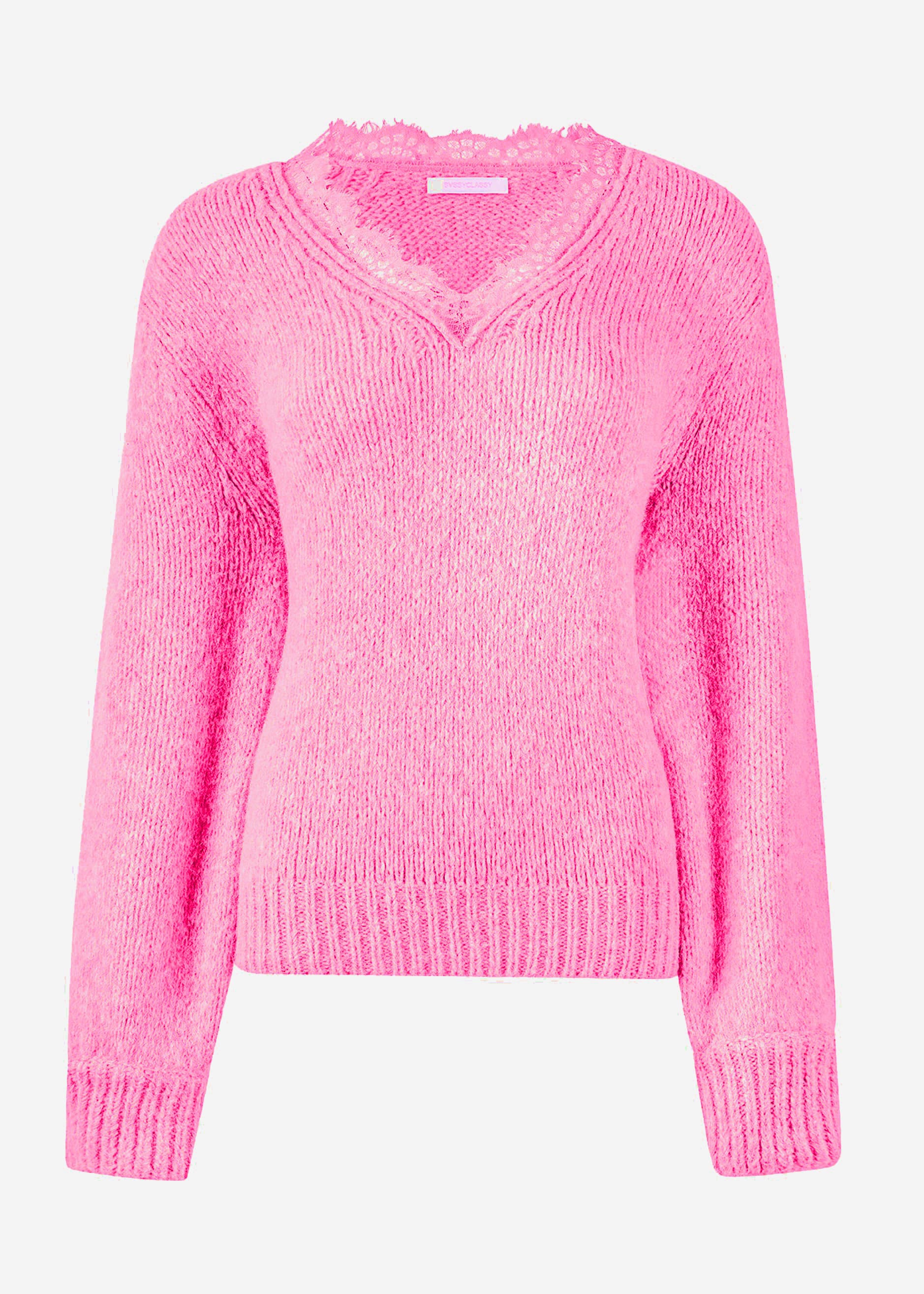 Sweater with lace neckline in pink