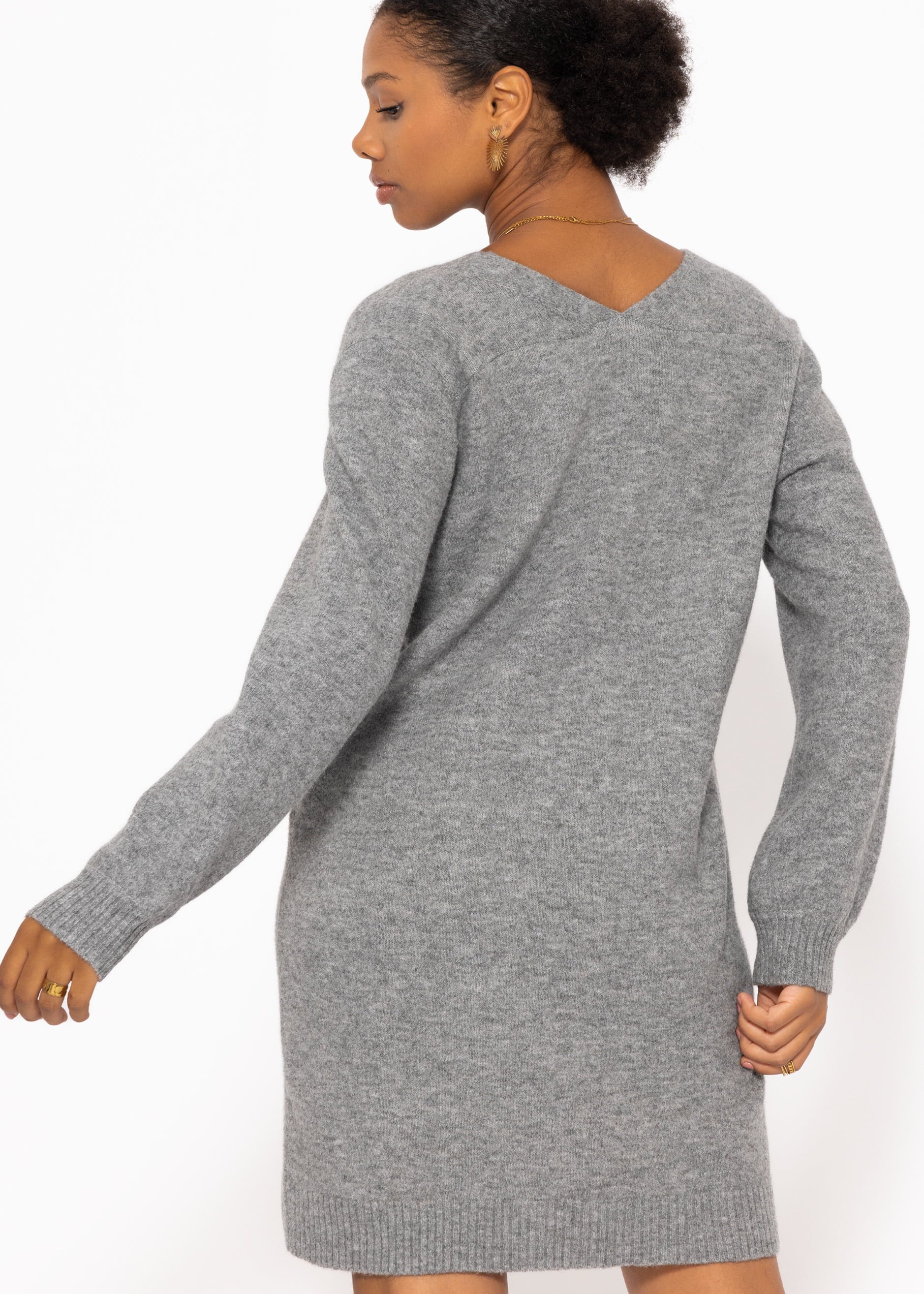 This knitted dress combines contemporary style and a comfortable fit and offers the perfect balance between chic and cozy. The high-quality knitted material ensures a soft feel and a flexible fit. The short knitted dress has a V-neckline at the front and back, giving it a certain sophistication.