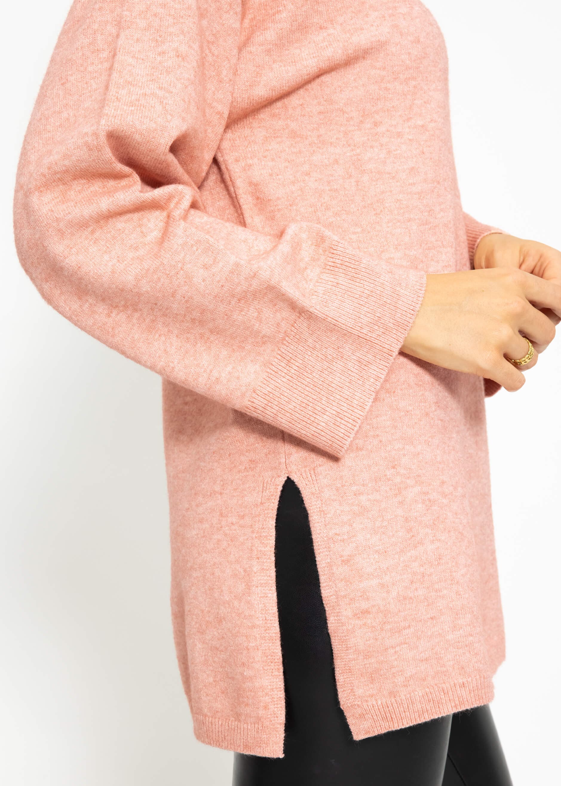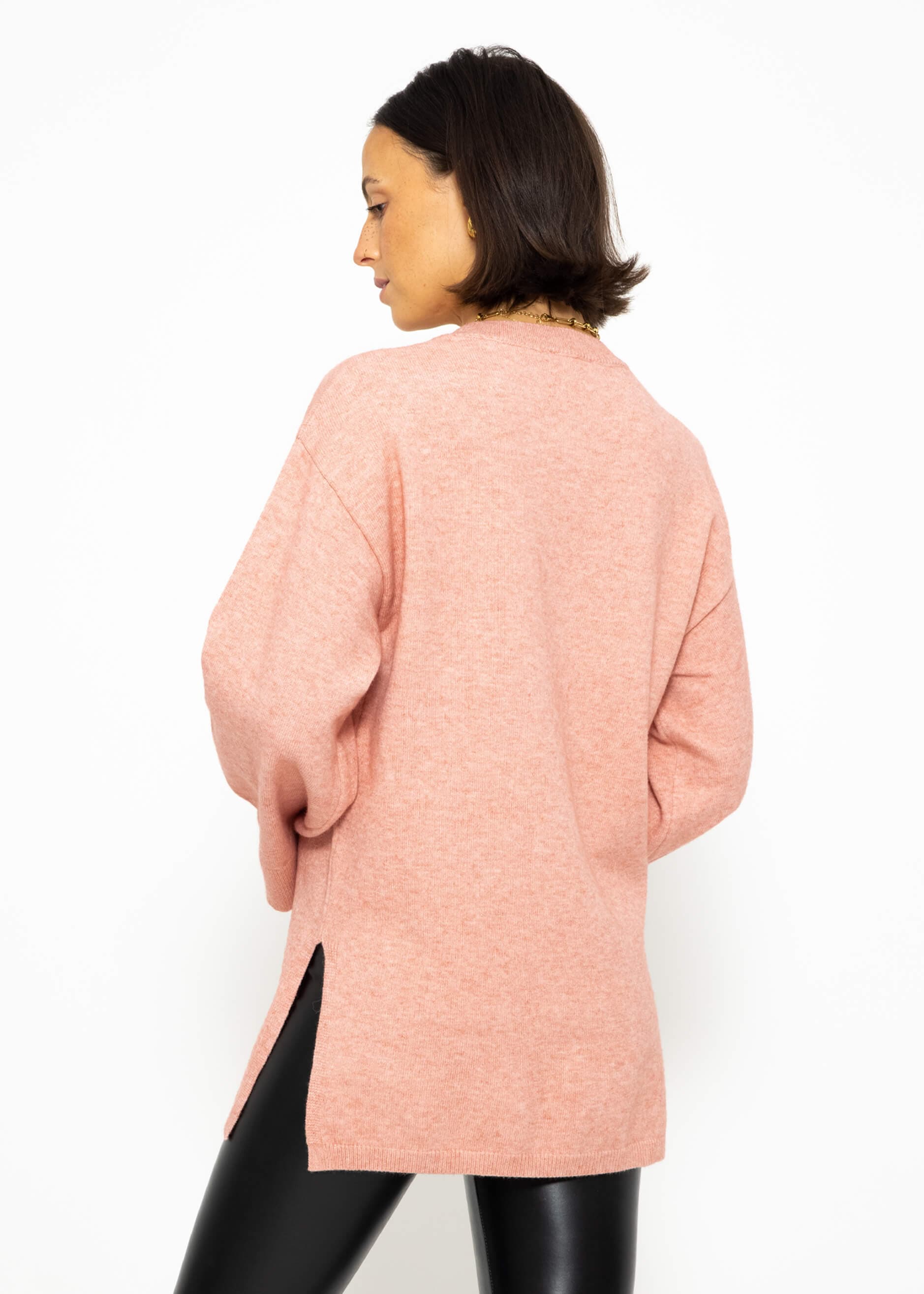Oversized sweater with side slits in pink