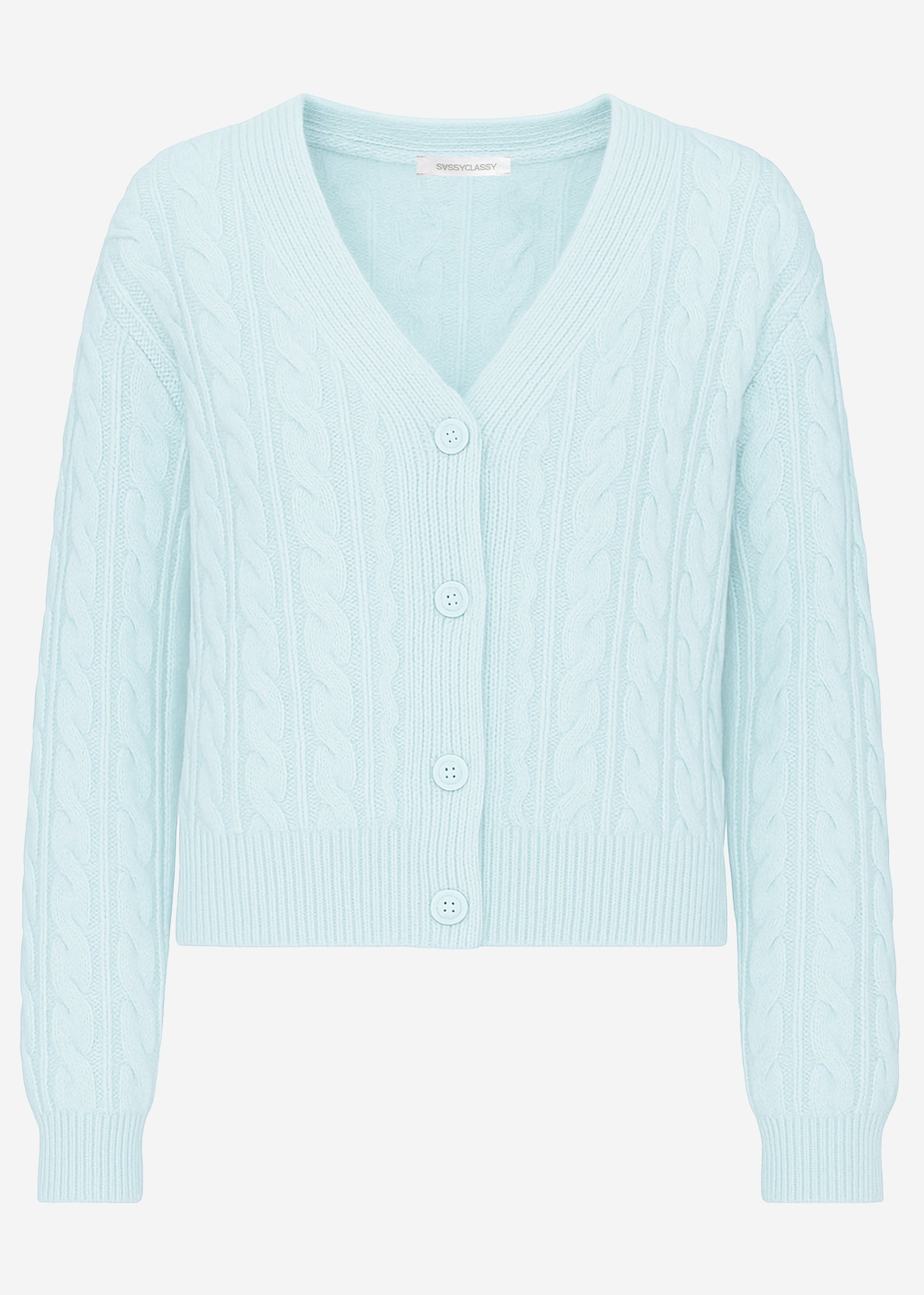 This cardigan combines timeless details with modern comfort. The classic cable knit pattern gives it an elegant structure, while the loose fit and dropped shoulders create a casual silhouette. The deep V-neckline transitions into a full-length button placket, allowing the cardigan to be worn open or closed. Ribbed cuffs stylishly round off the design and create a harmonious look. A versatile knitwear piece that is perfect for cozy everyday outfits or as a stylish layering piece.