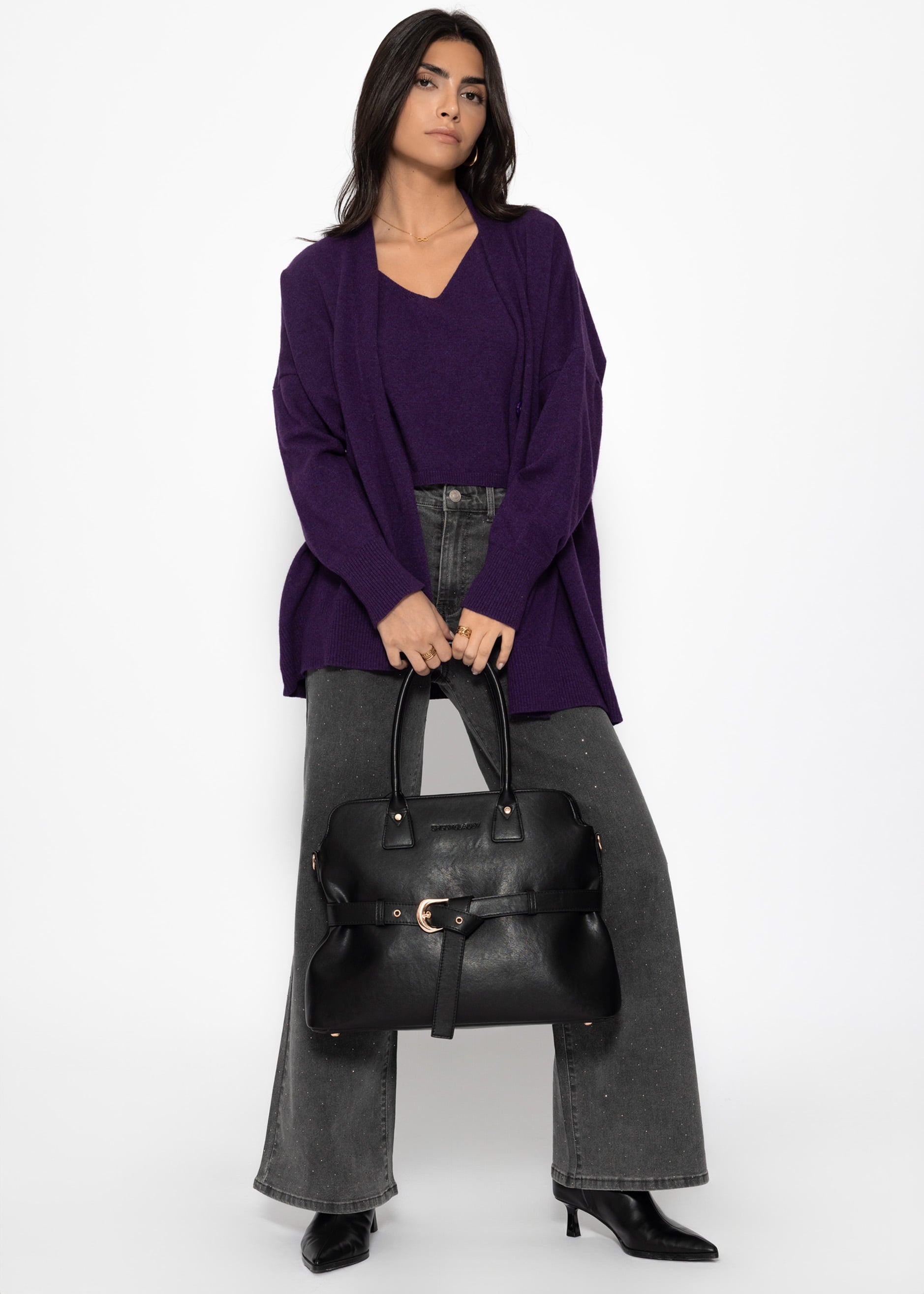 This oversized cardigan combines casual elegance with luxurious comfort. The high-quality knit fabric with cashmere content feels particularly soft against the skin and provides a pleasant feeling of warmth. Thanks to its loose fit, dropped shoulders, and deep V-neck, it has a modern and relaxed look, while the large buttons add classic accents. Wide ribbed cuffs and hem add extra structure. This cardigan is versatile and can be worn perfectly with matching pants in the same material and color to create a stylish ensemble.
