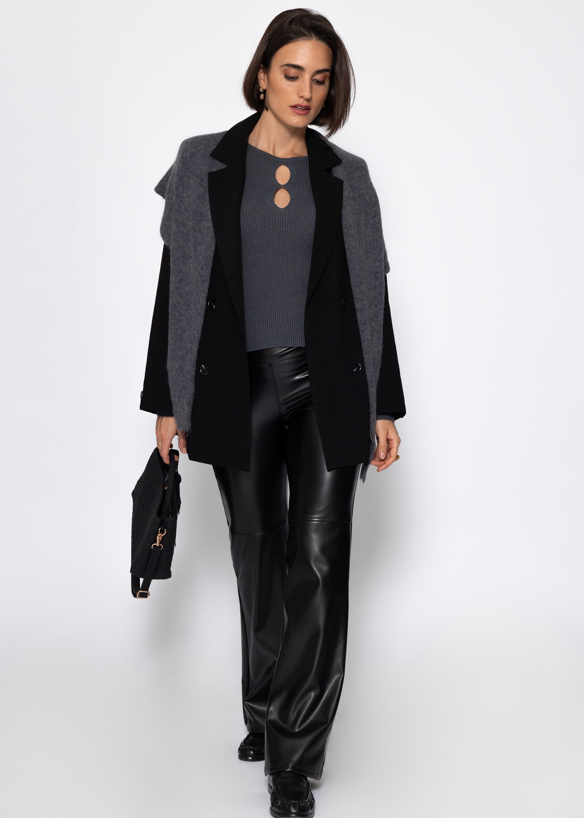 Ribbed knit top with cutouts in gray