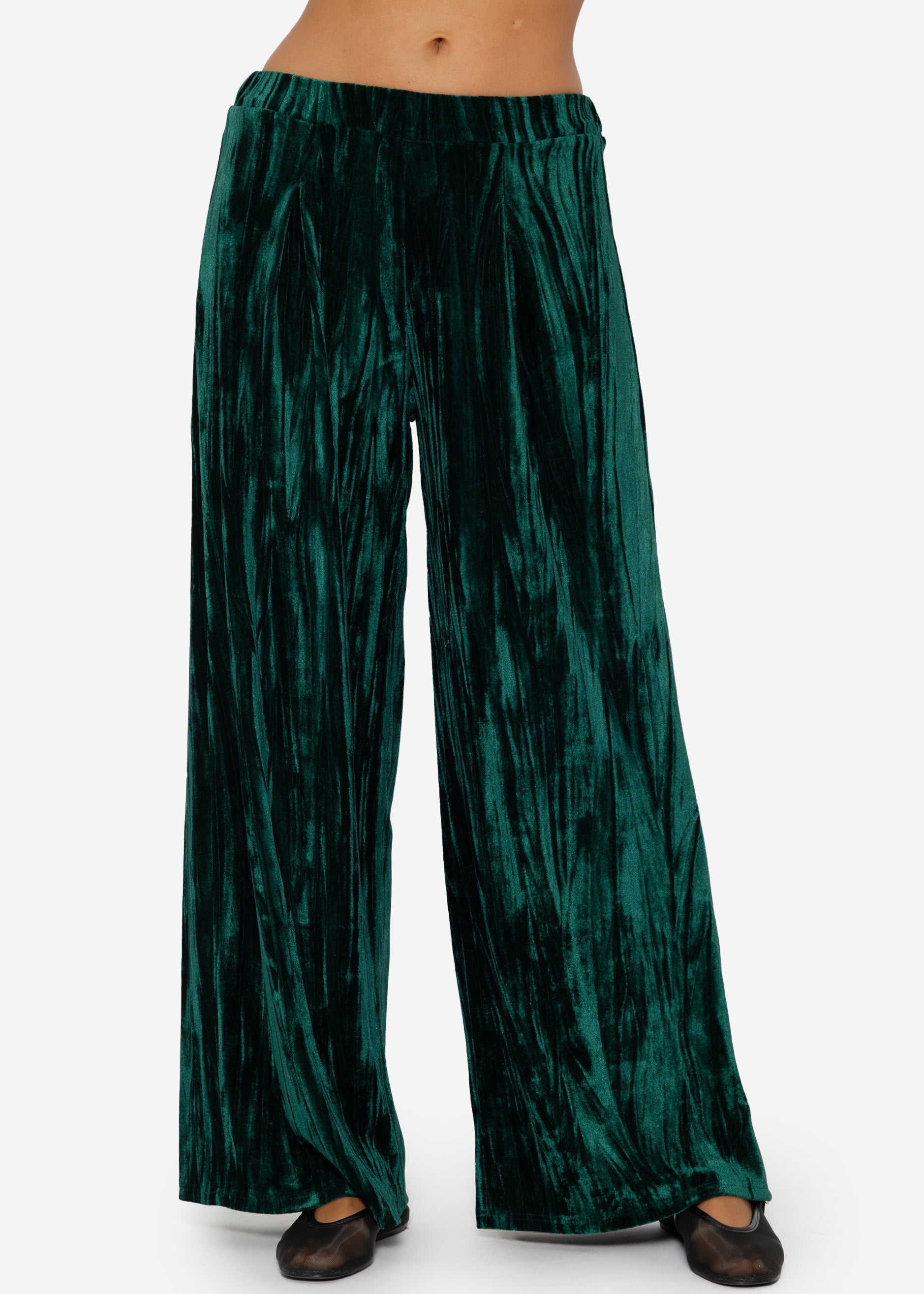 Wide velvet trousers in emerald green