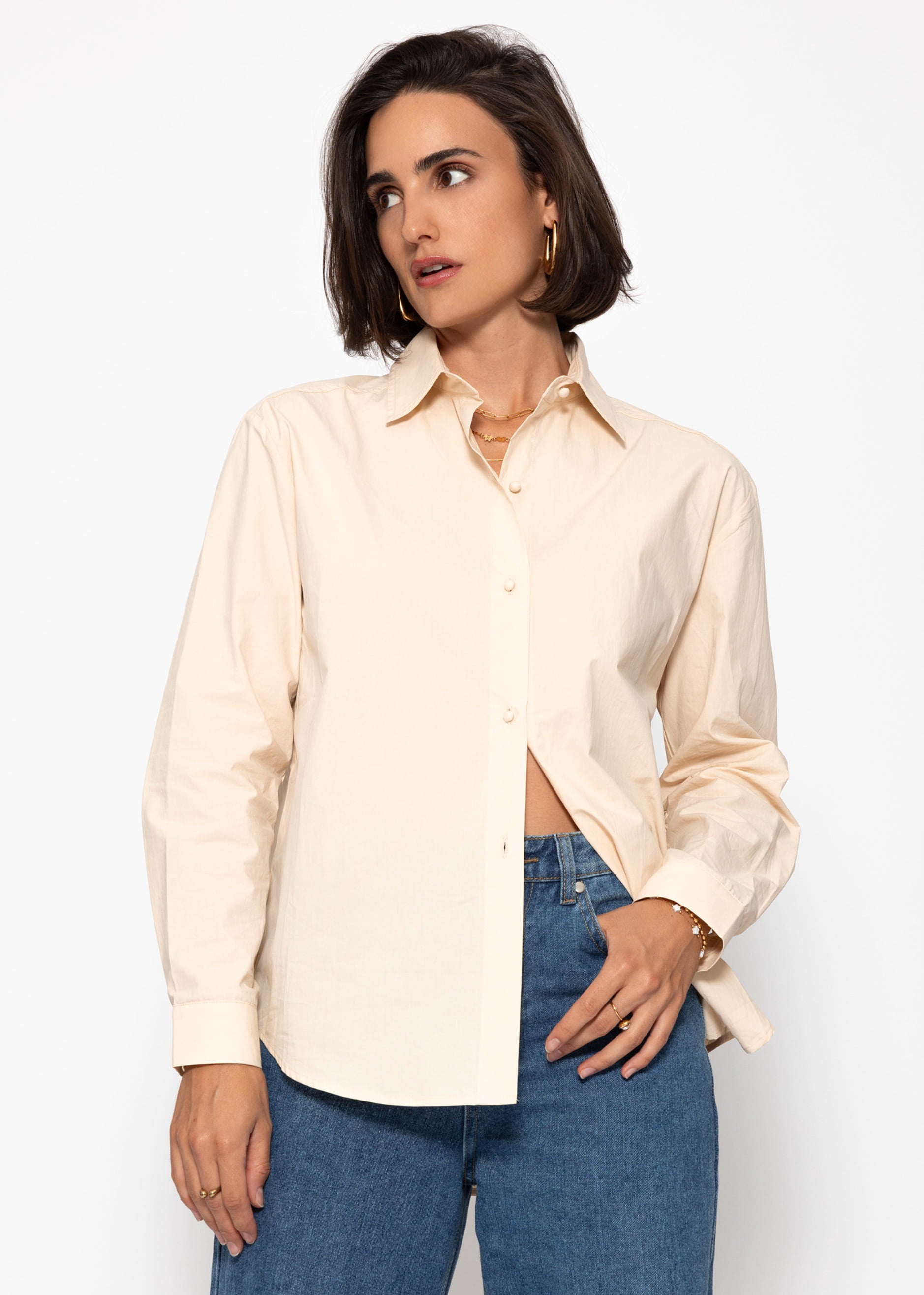 This elegant cotton blouse combines classic design with fashionable sophistication. The delicate color ensures a fresh, stylish look that convinces both in the office and in your free time. A special highlight is the removable smack on the collar: with it, the blouse can be transformed into a feminines in no time at all - or simply wearing it without it. Thanks to the loose fit, classic shirt collar and the long sleeves with cuffs, it is a versatile companion that can be perfectly combined with jeans, fabric trousers or skirts.