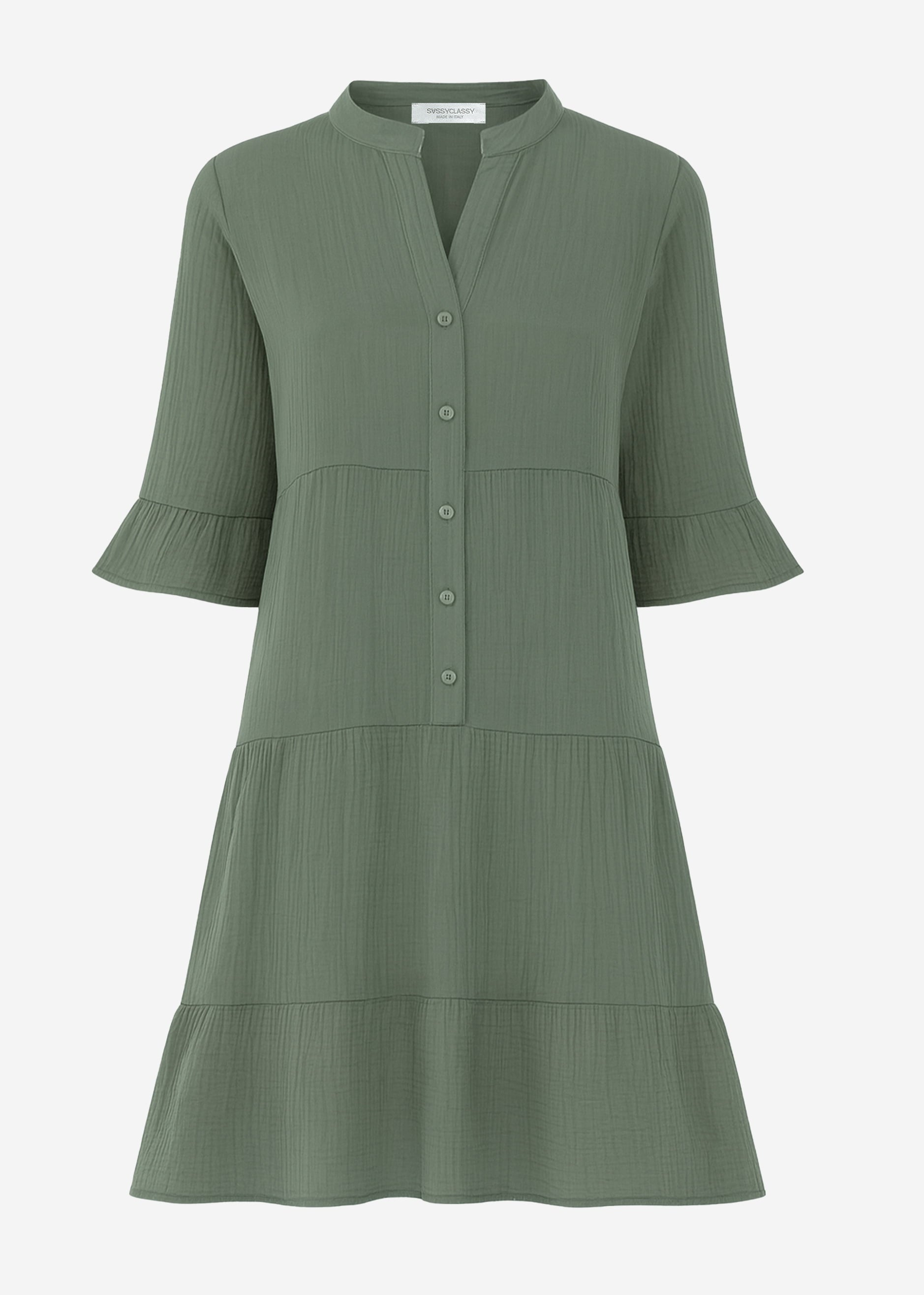 Musselin Dress with Volants - Khaki