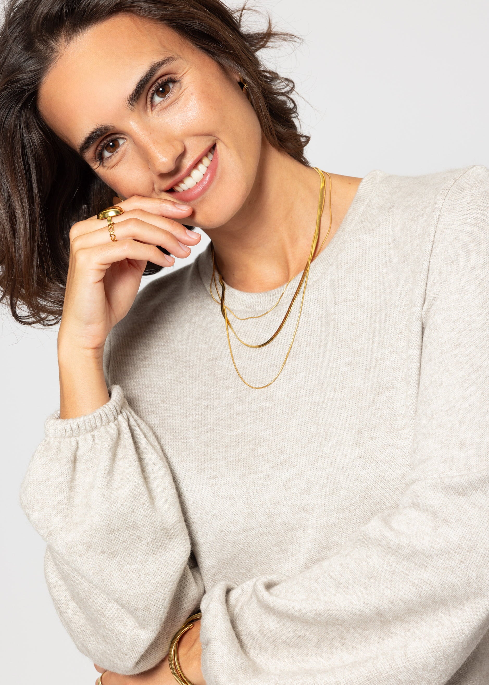 Super soft jersey dress in midi length in taupe