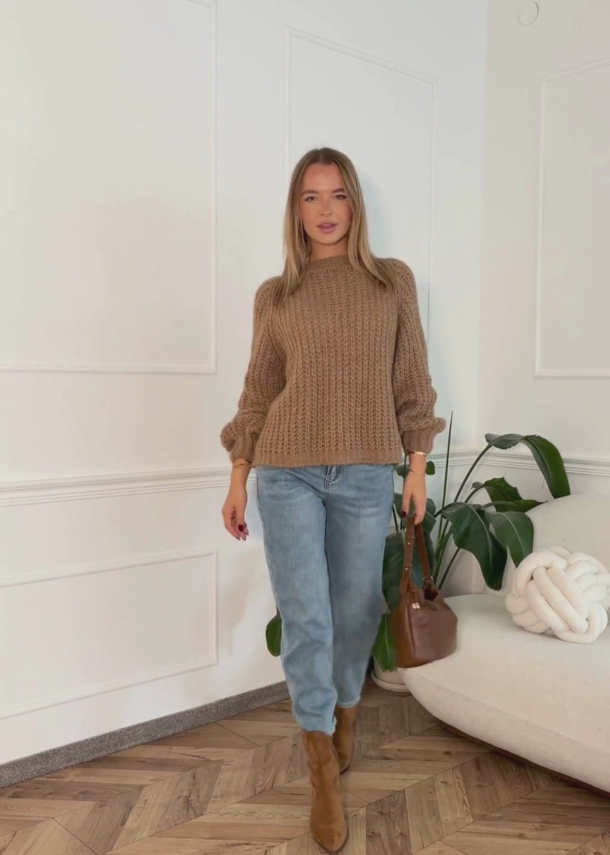 59,95€Unit price /UnavailableKnitted top with puff sleeves - aubergine brown