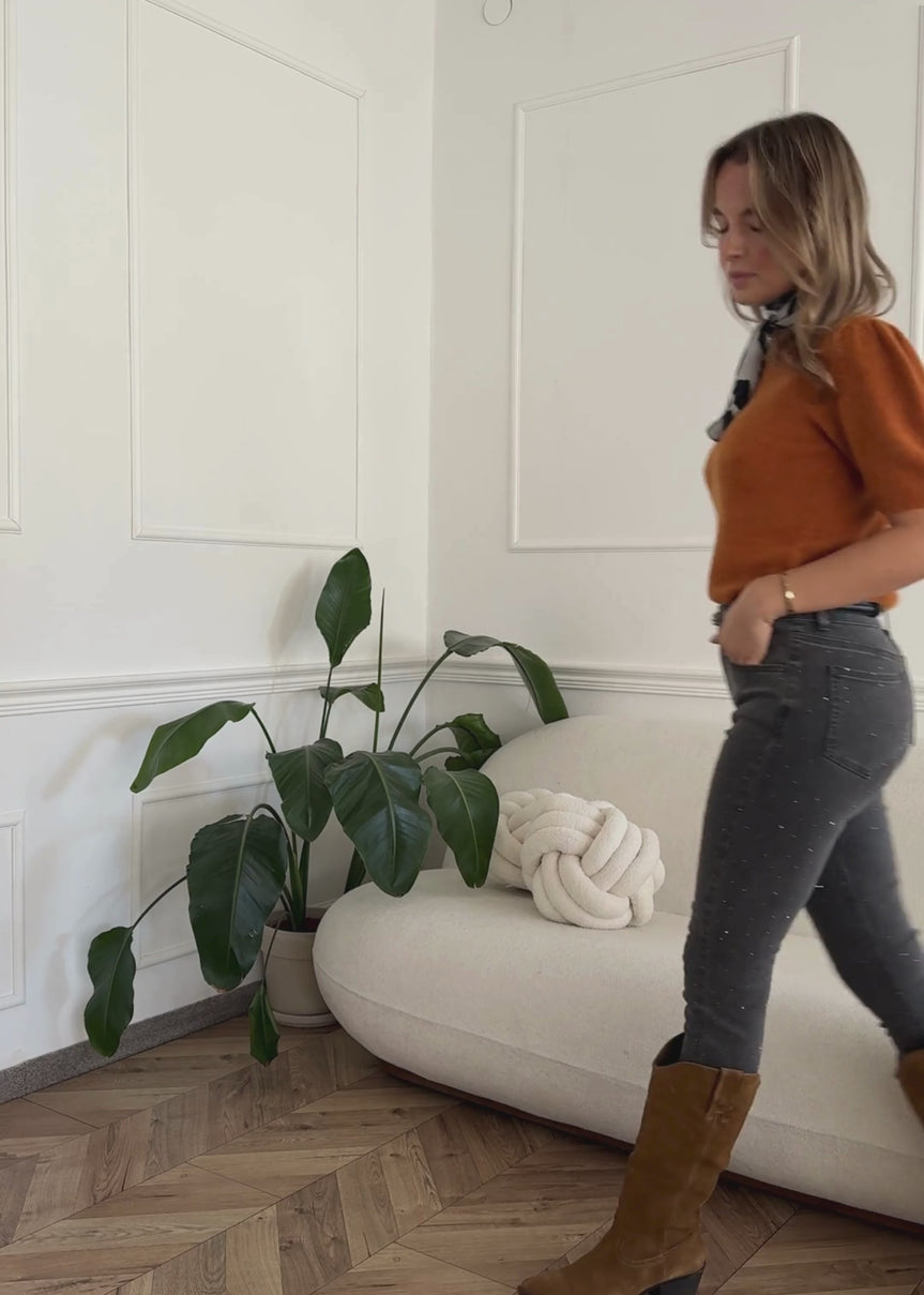 29,99€59,95€Unit price /UnavailableKnitted top with puff sleeves - cognac