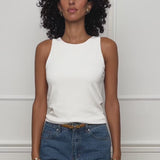 This finely ribbed tank top is a basic that should not be missing from your closet. This style has a high-quality, double-layer finish that ensures opaque comfort. The fine ribbed structure of the top adds a subtle texture and a touch of sophistication. Made from viscose with a percentage of elastane, the top feels soft against the skin and promises maximum comfort. The round neckline and wide straps emphasize the casual character of the design.