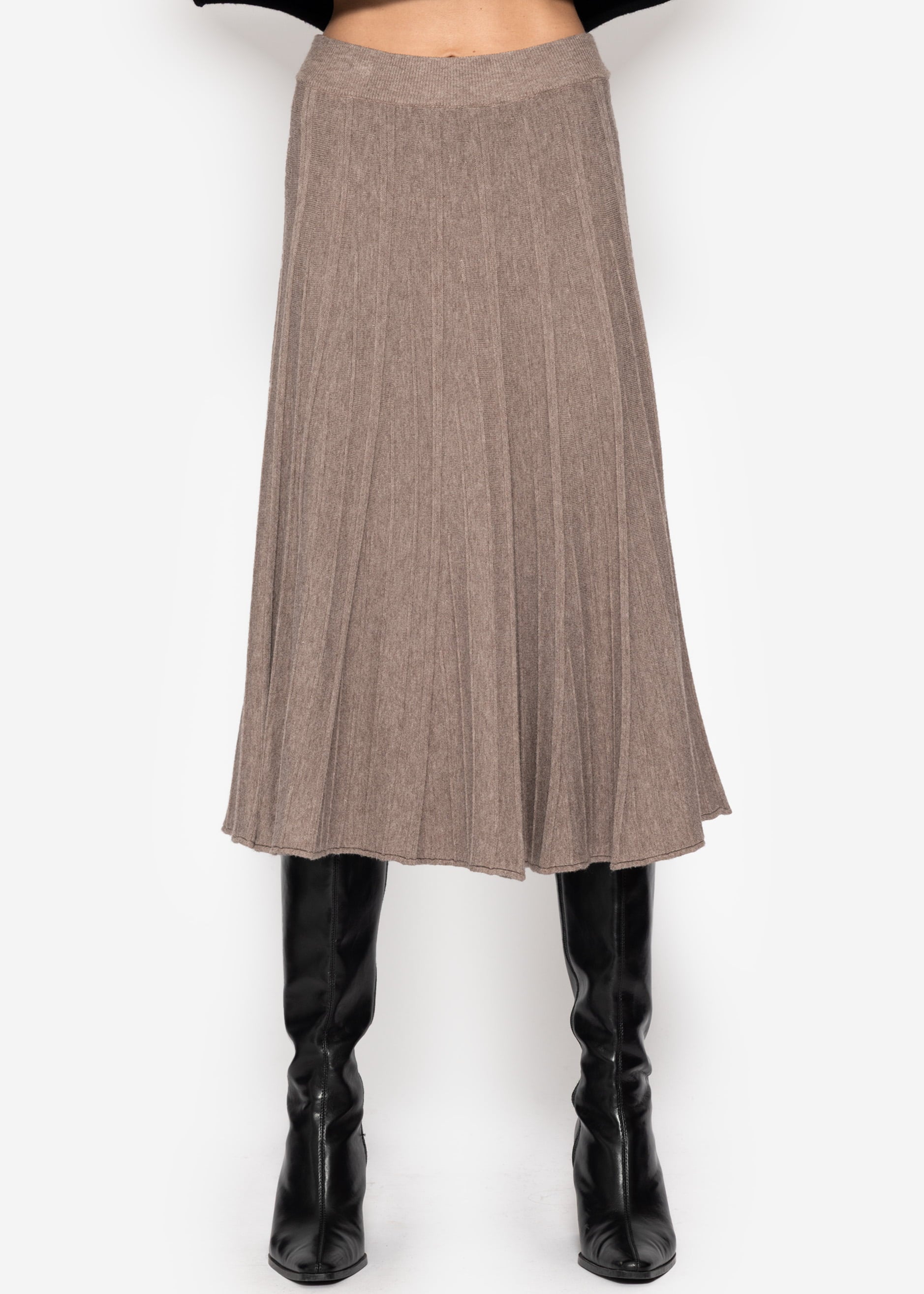 Pleated knit midi skirt in taupe