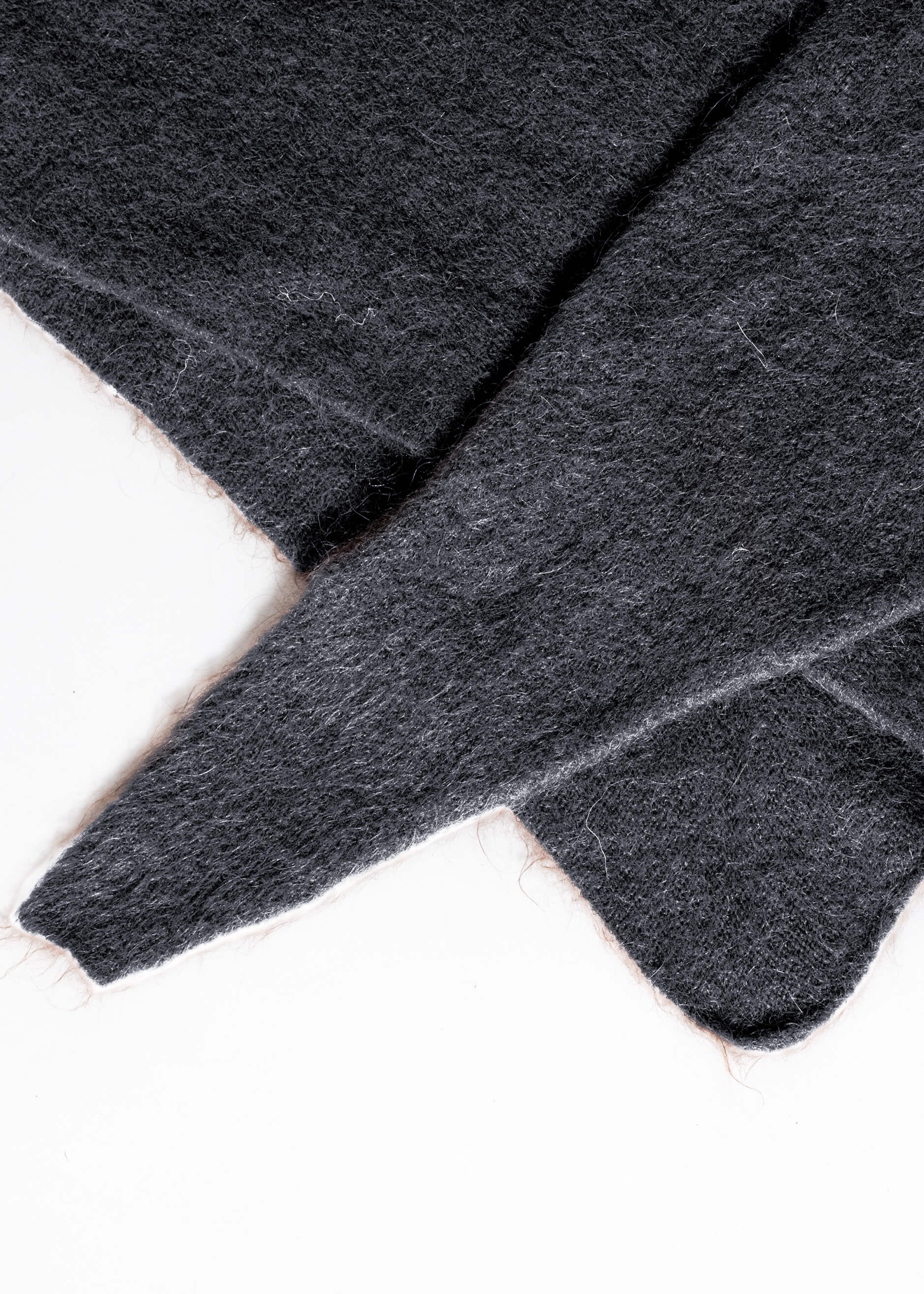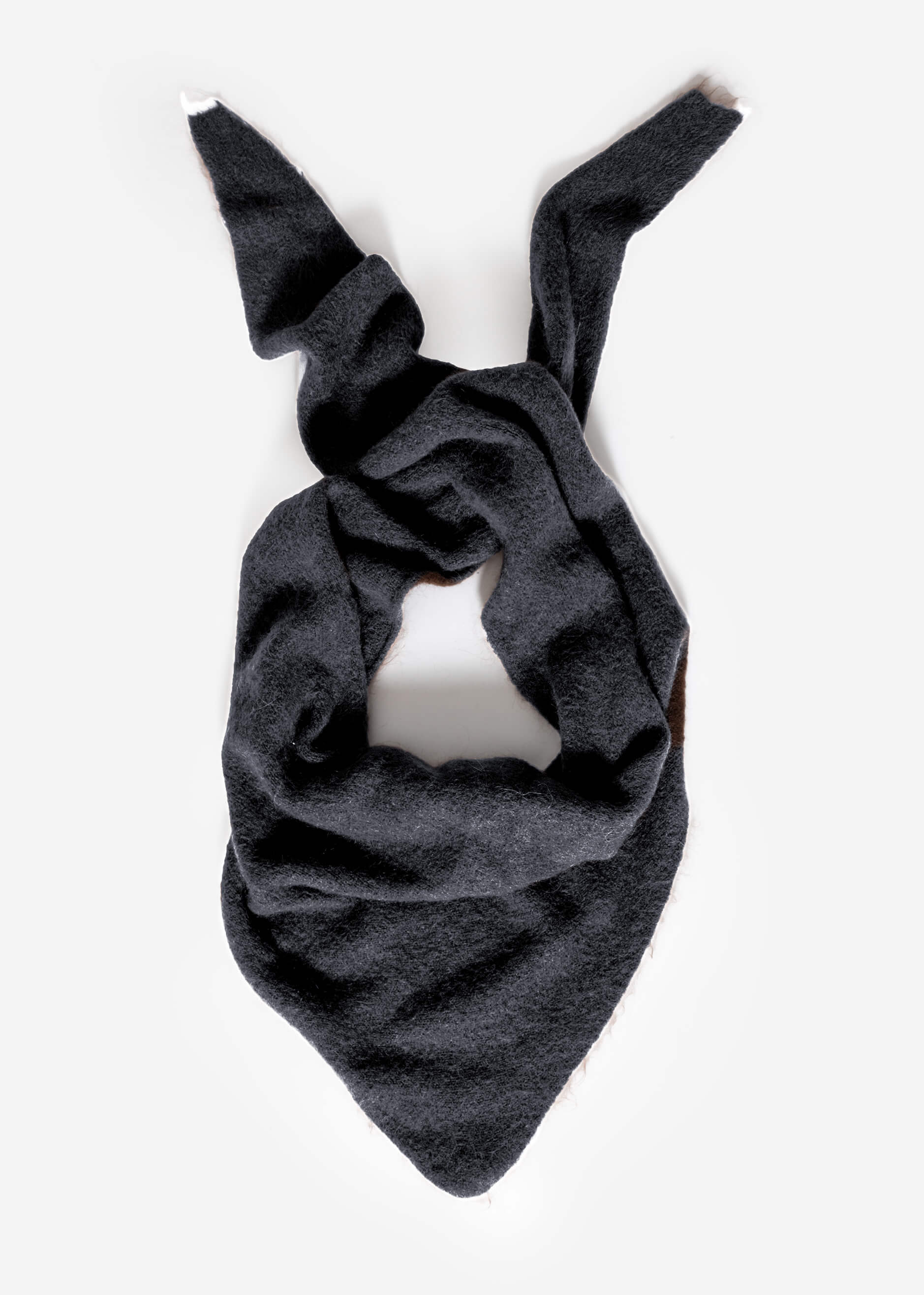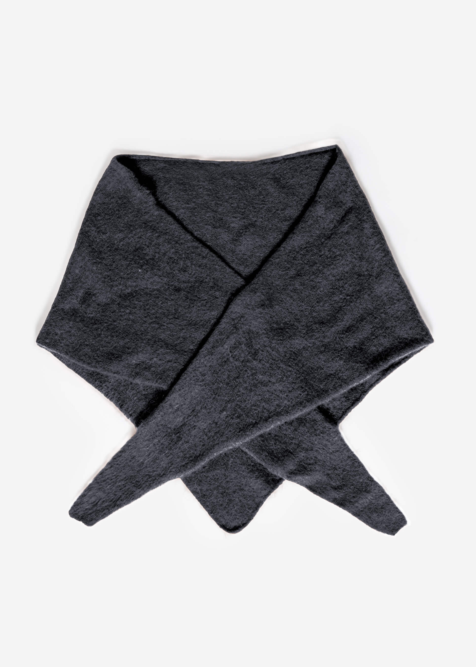Soft triangular scarf with alpaca blend for a particularly fluffy, warm feel. The lightweight knit fabric drapes smoothly and is ideal for cozy layered looks. Perfect for wrapping around, knotting, or casual draping.