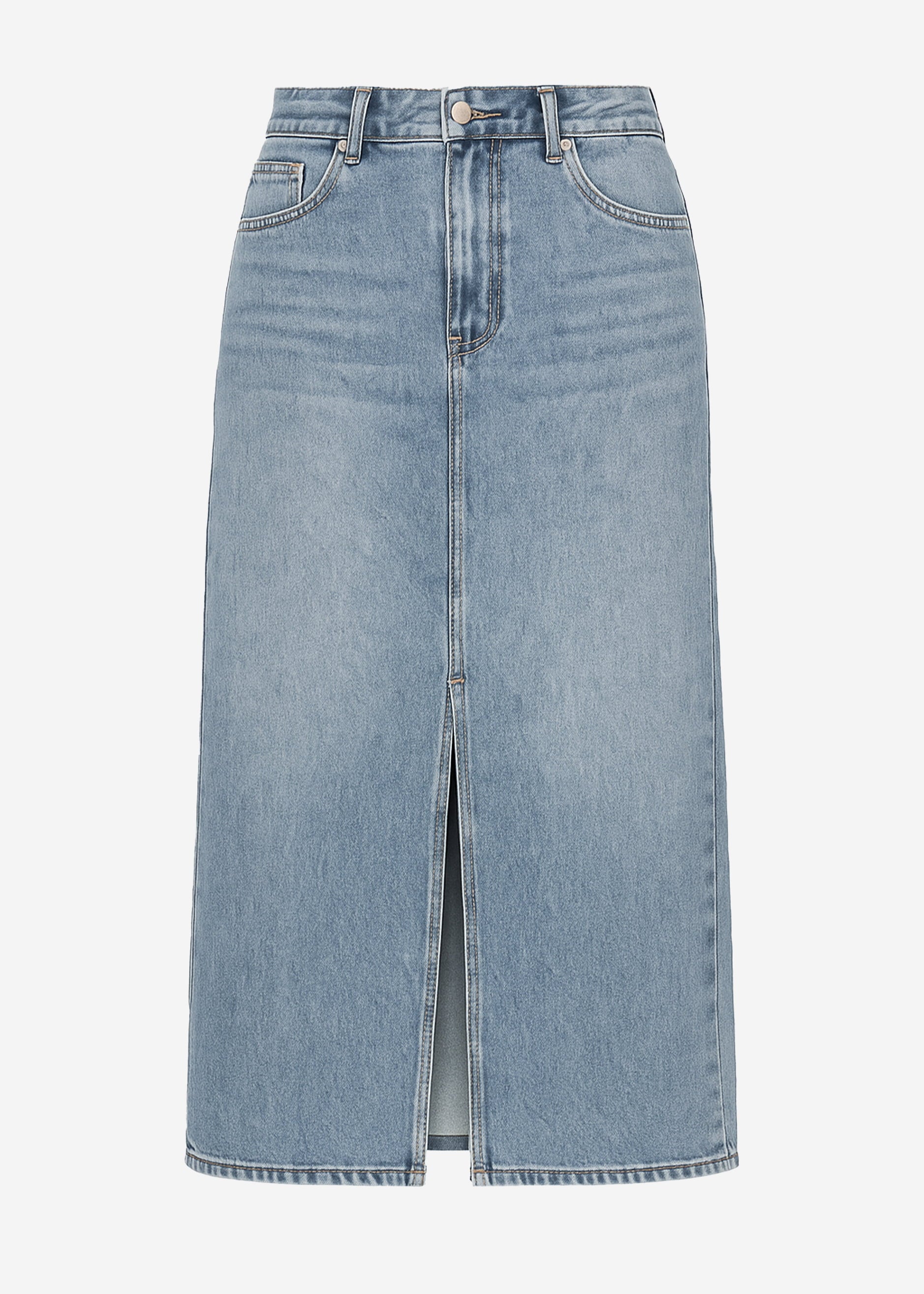 This jeans rock combines traditional denim style with modern elements. The 5-pocket style, the button and zipper as well as the belt loops give the model classic, functional details, while the high waist and the midi length reflect current trends. The striking slot on the front ensures freedom of movement and creates a playful note. This versatile skirt can be perfectly combined with a nice top and slipper for a casual everyday look.