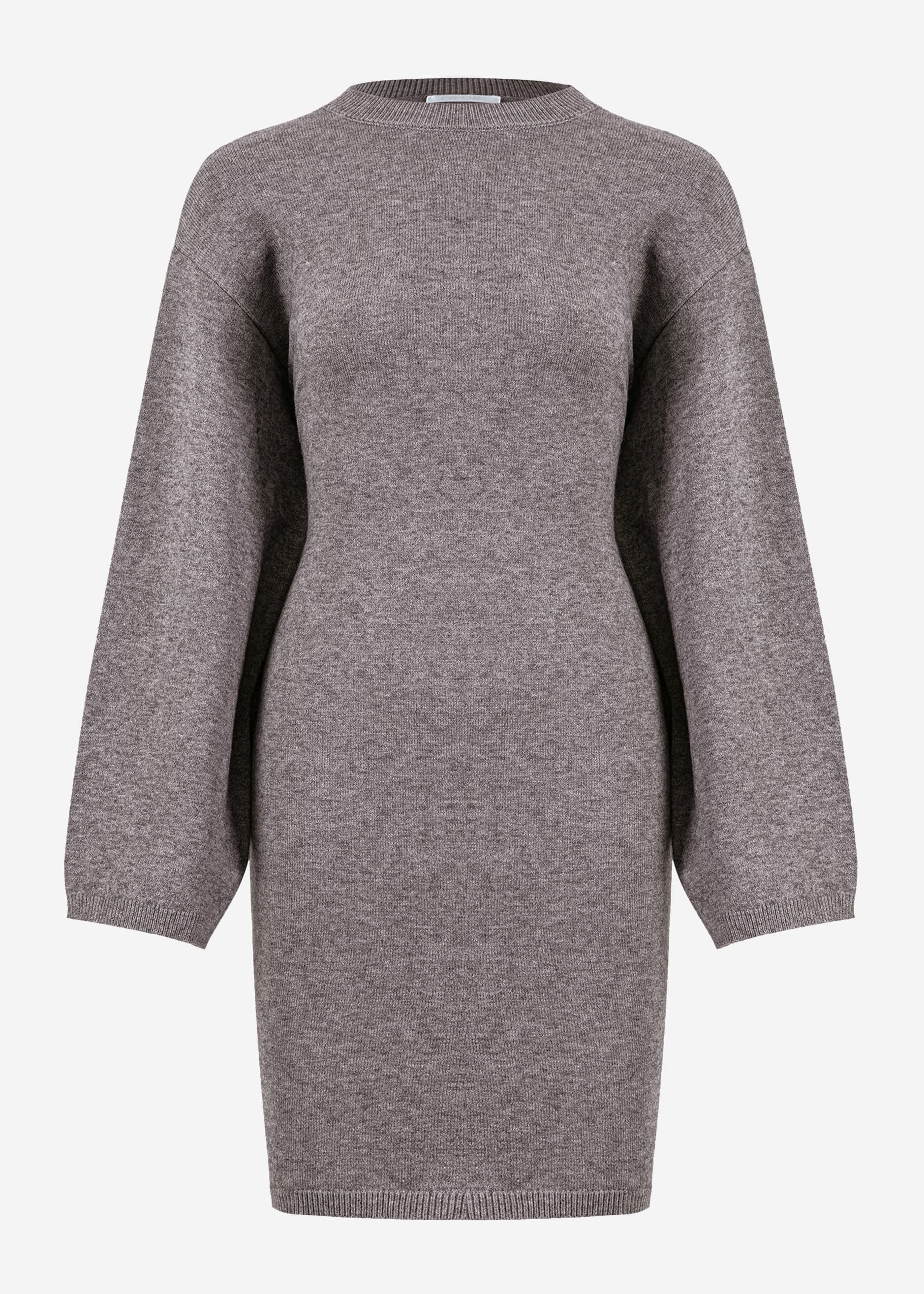 This knit dress embodies the perfect synthesis of stylish aesthetics and a comfortable fit. It features a round neck, a mini length, and ribbed trims. The oversized fit, wide, long sleeves, and dropped shoulders create a trendy look while allowing freedom of movement. Crafted from a high-quality knit, this dress ensures shape retention and a comfortable fit. Whether paired with boots for a casual everyday look or heels for special occasions, this dress will effortlessly elevate your look.
