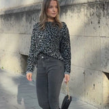 With its striking leopard print pattern, this sweater makes a strong fashion statement while also impressing with its cozy comfort. The wide boat neck is a real eye-catcher and can be worn casually over one shoulder, lending the look a seductively casual touch. The soft knit material provides warmth and a feel-good factor, while the oversized fit guarantees freedom of movement and a relaxed fit. Whether worn with jeans, leather leggings, or skirts – this sweater is a must-have for anyone who values a trend-conscious outfit.