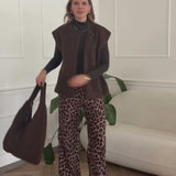 Geripptes Langarmshirt in Braun mit schmalem Stehkragen für einen cleanen, femininen Look. Die figurbetonte Passform und der weiche Stoff machen es zum vielseitigen Basic für Layering und Everyday-Outfits.