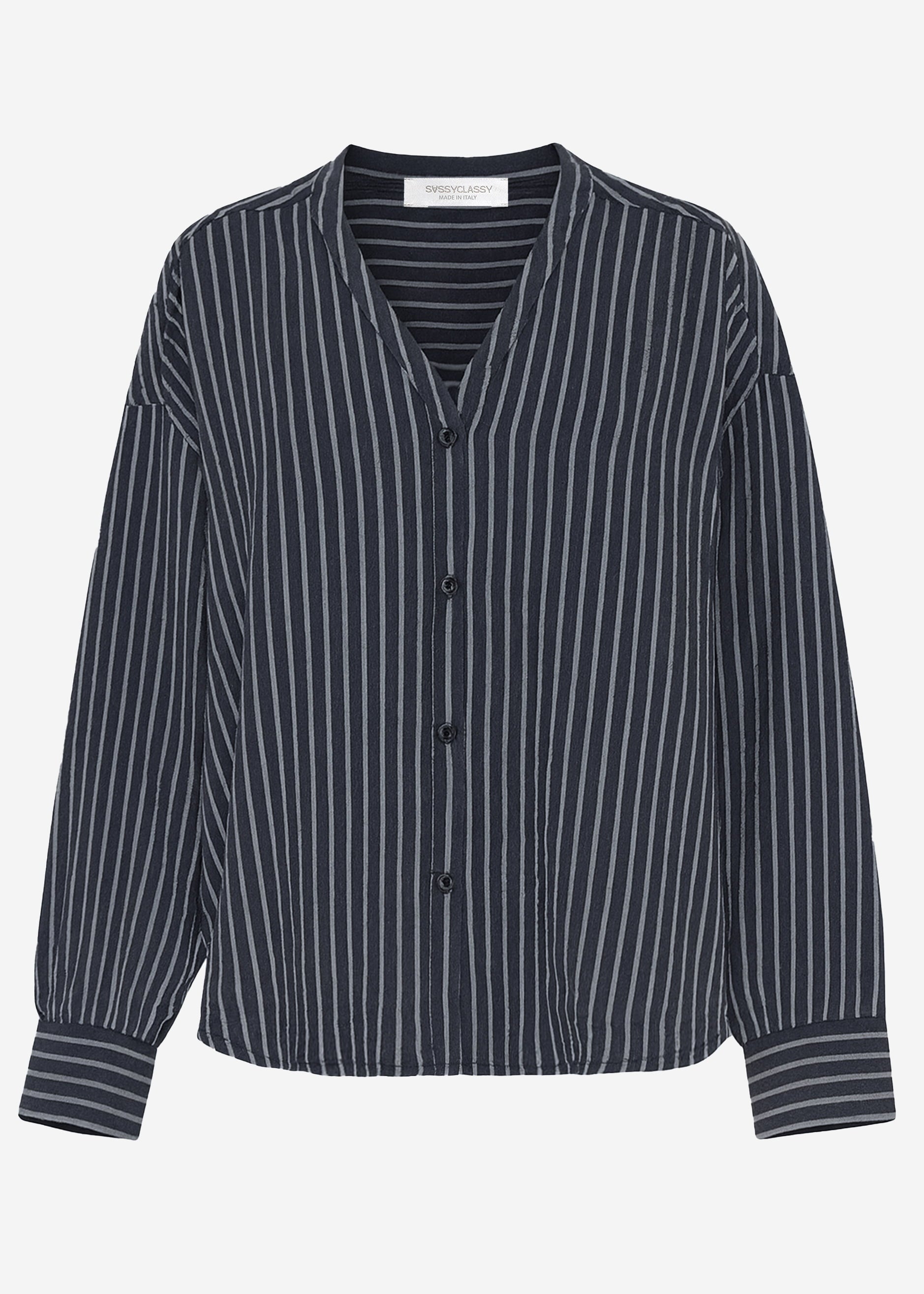 Oversize muslin blouse with light stripes - grey