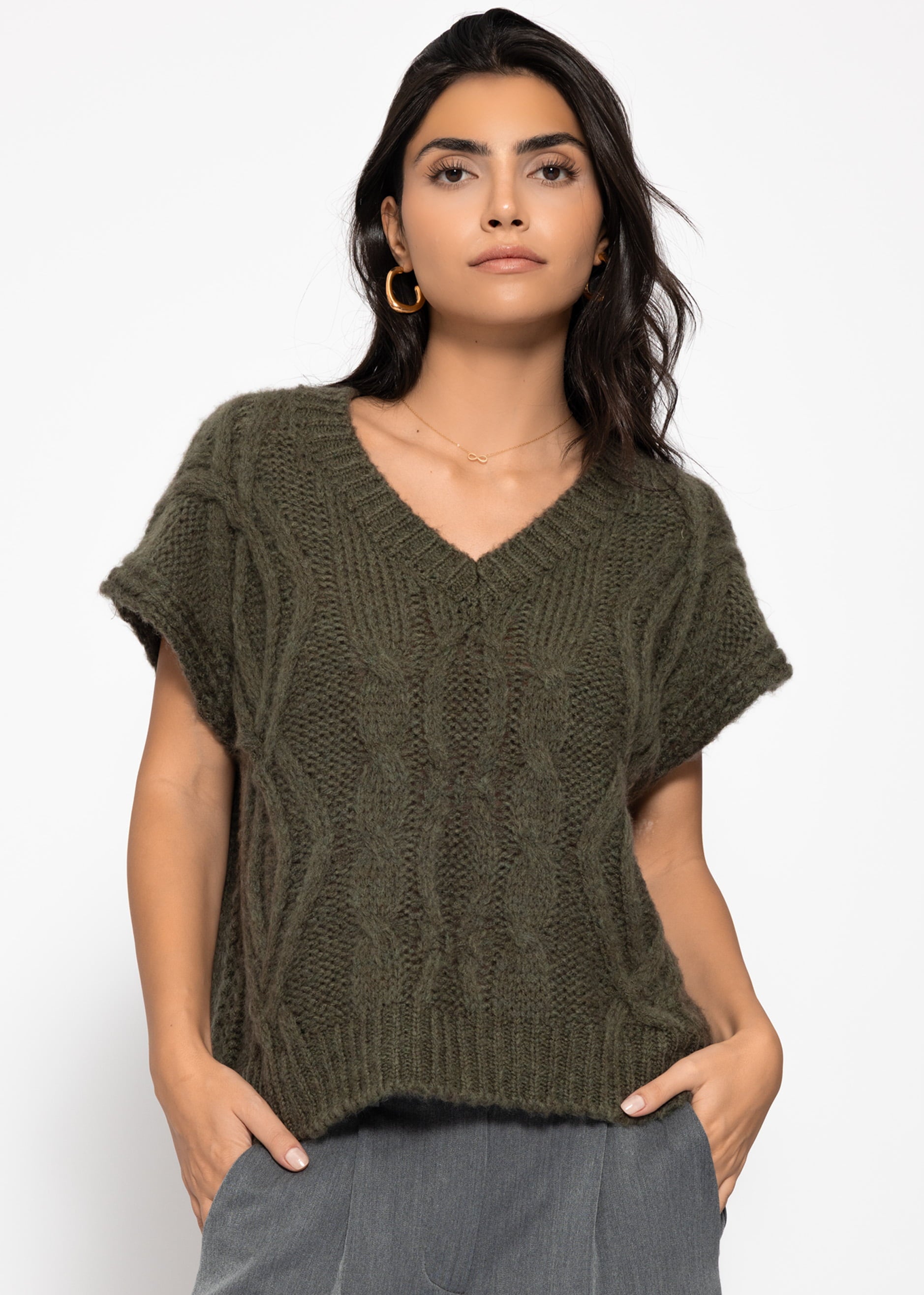 Sleeveless sweater with cable knit pattern and V-neck - green