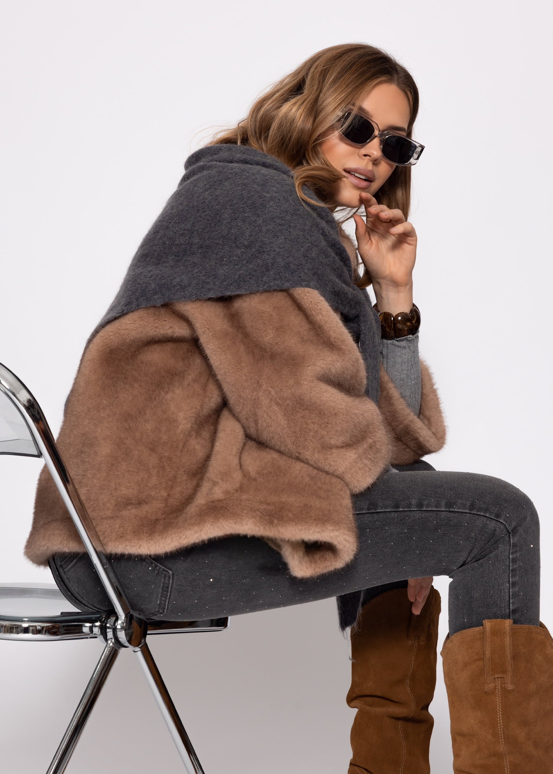 Soft triangular scarf with alpaca blend for a particularly fluffy, warm feel. The lightweight knit fabric drapes smoothly and is ideal for cozy layered looks. Perfect for wrapping around, knotting, or casual draping.
