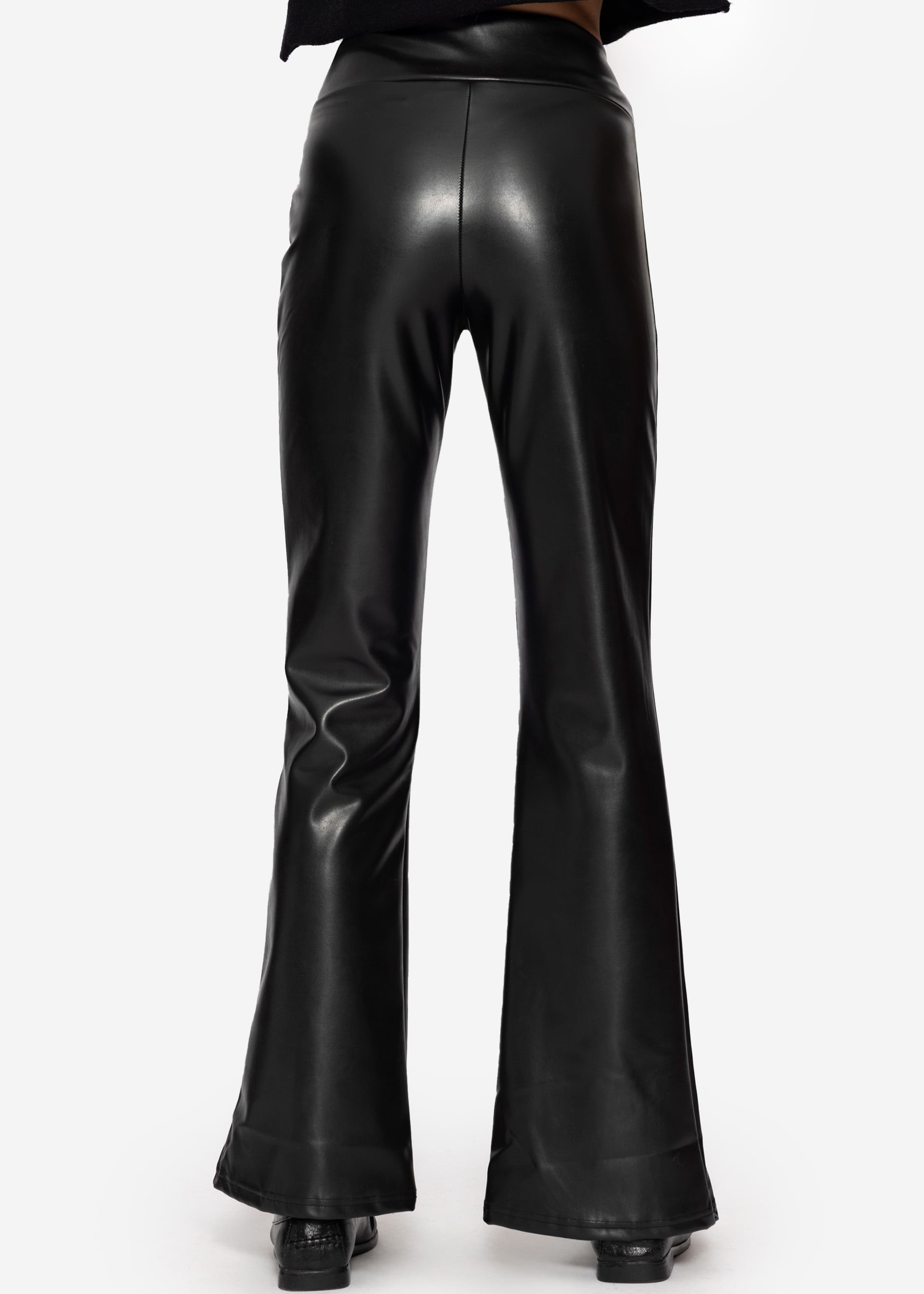 These faux leather leggings are a true must-have for anyone who wants to create a modern yet sophisticated look. The high-quality faux leather hugs the figure perfectly, creating an elegant silhouette. Decorative vertical seams visually lengthen the legs, while the wide waistband ensures a comfortable fit and exceptional wearability. The small slits at the front hem are particularly striking. They not only offer freedom of movement but also stylishly showcase shoes. Whether casually paired with an oversized sweater and sneakers or chicly combined with a blazer and high heels – these leggings are versatile and add a trendy touch to any outfit.