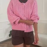 Cardiac cardigan with a circular neckline in pink