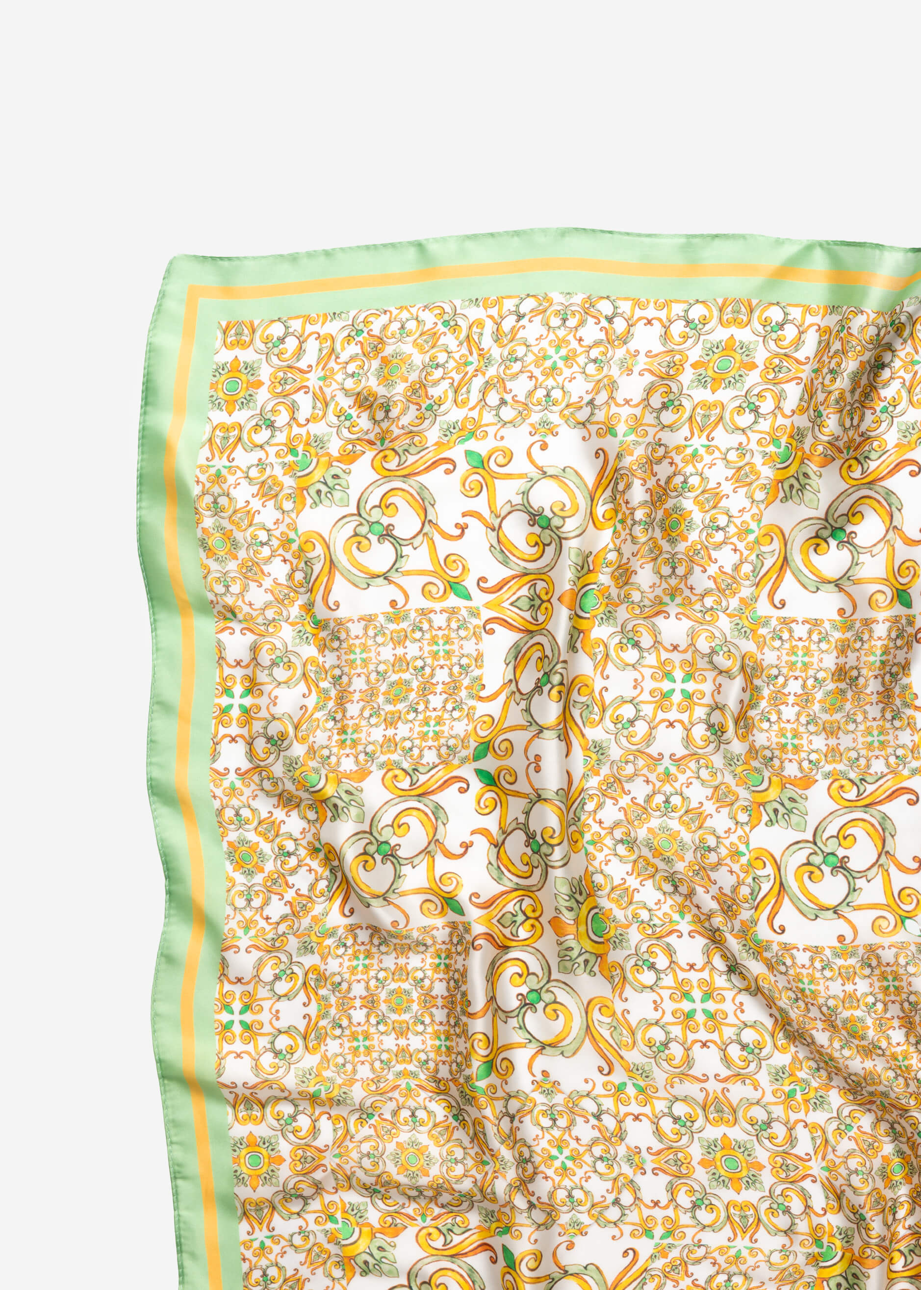 A fine green scarf with With its delicate ornamental design and silk content, this smooth, slightly lustrous fabric offers a high-quality, elegant look, while the detailed print lends the design a timeless touch. A sophisticated accessory with a pleasantly soft feel.
