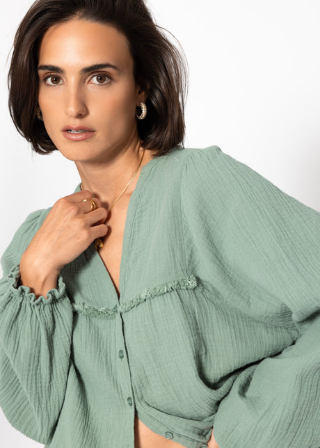 39,99€59,95€Unit price /UnavailableMuslin blouse with V-neck and fringes - sage green