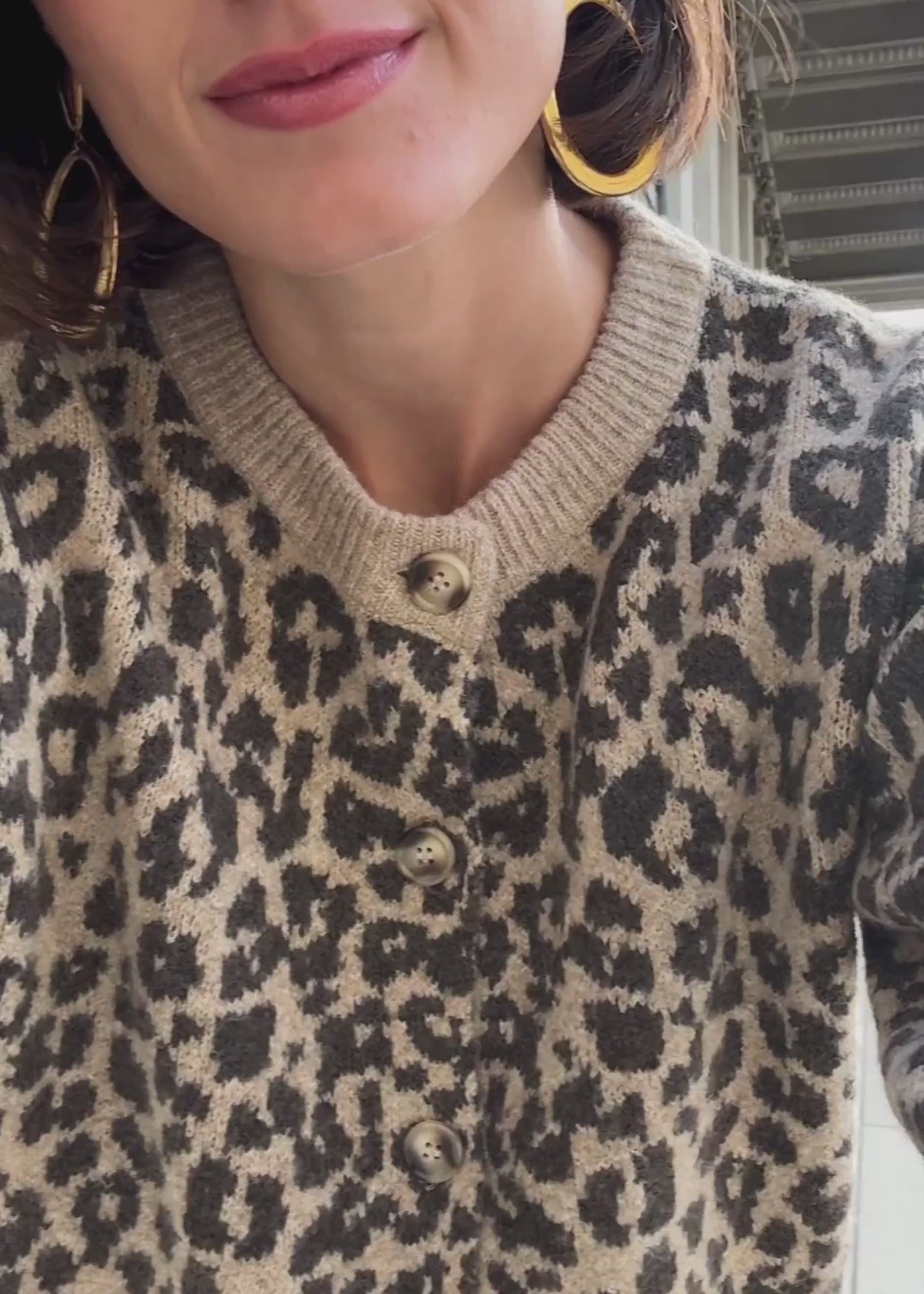 Make a fashion statement with this cardigan in a trendy leopard print. The soft knit provides pleasant warmth and a cozy feel, while the striking all-over leopard print adds a trendy, confident touch to your outfit. The classic button placket stylishly completes the design. Thanks to the comfortable fit and ribbed cuffs and hem, the cardigan can be combined in a variety of ways—whether casually with jeans or chicly over a dress.