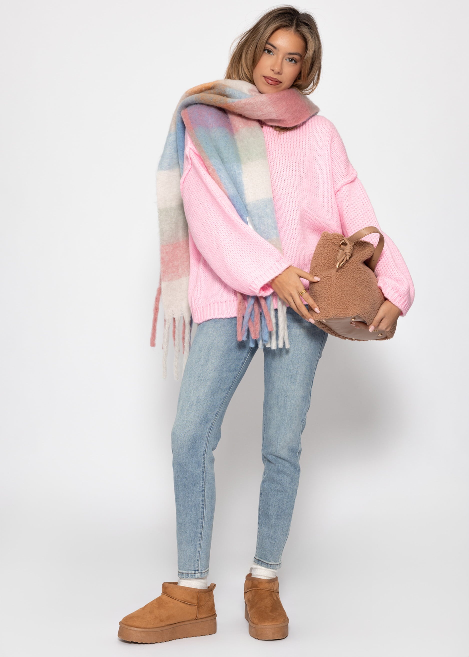 Oversize-Pullover mit Rundhalsausschnitt - rosa