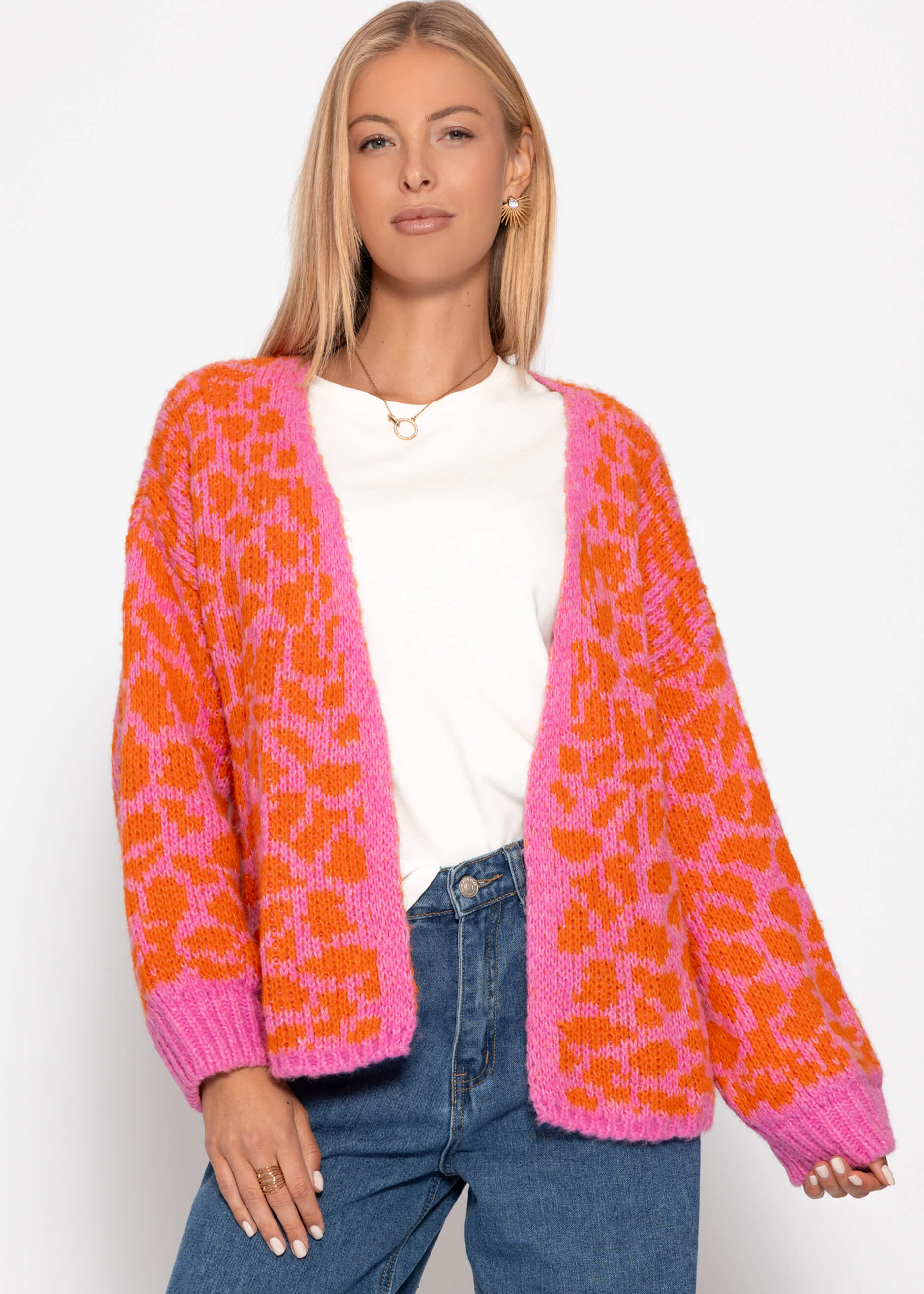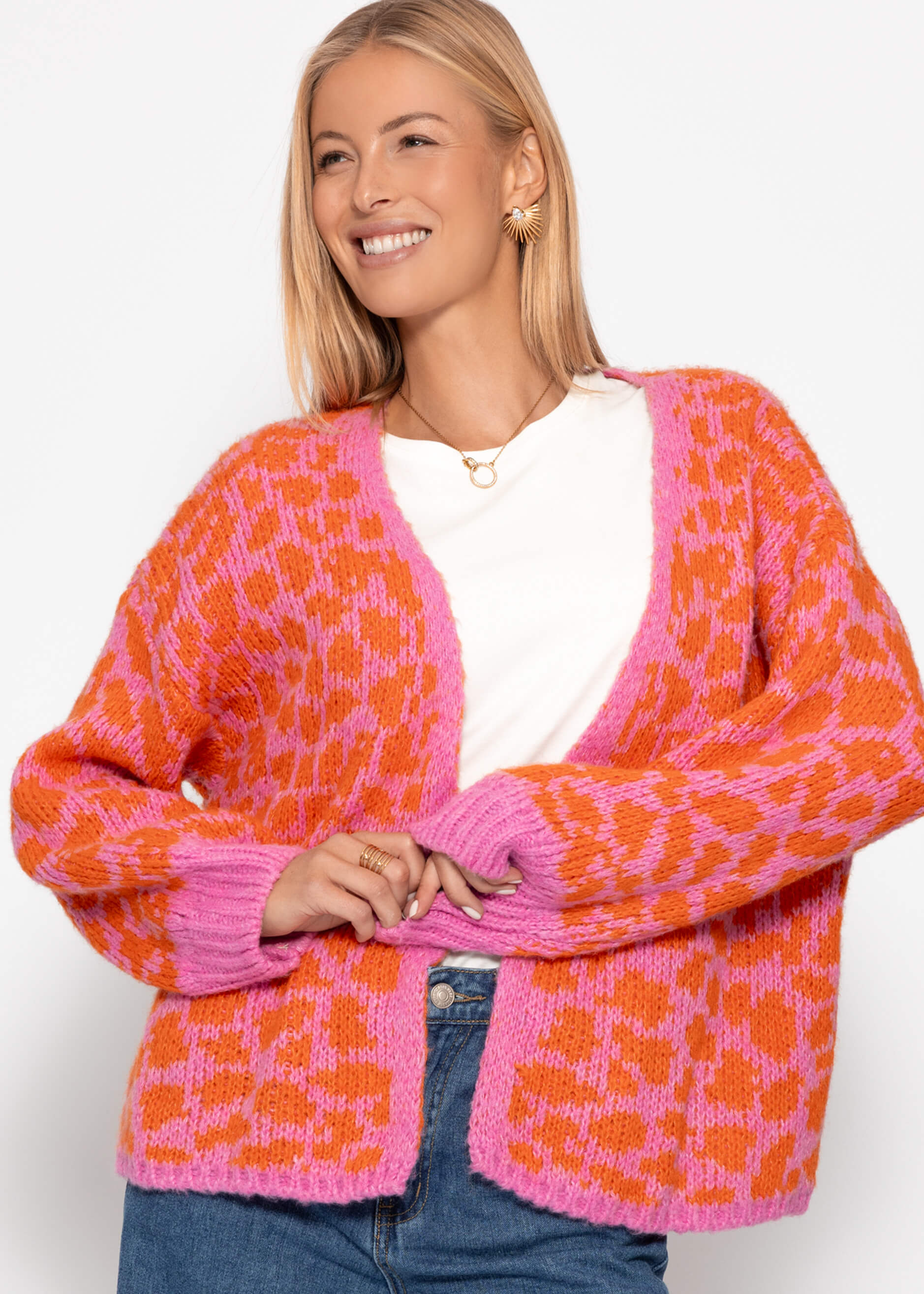 This cardigan is a must-have in your closet. With its eye-catching leopard print, it is guaranteed to turn heads. The open silhouette and ribbed cuffs give the cardigan a casual touch, while the high-quality knit fabric makes it comfortable to wear. The slightly dropped shoulders and loose fit make it ideal for layering over simple outfits or basics. Perfect for combining with jeans or more elegant pants for a casual, fashionable look.