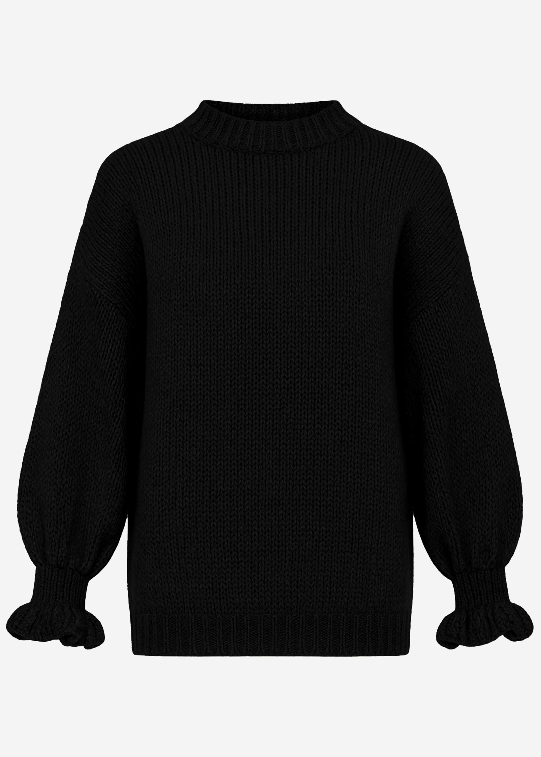This sweater strikes the perfect balance between a casual oversized look and feminine elegance. The soft, textured knit loosely hugs your silhouette, while the ribbed cuffs and hem provide a stylish finishing touch.