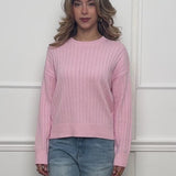 A sweater with a fine ribbed texture and a clean, timeless look. The straight cut features a round neck and long sleeves for a relaxed silhouette. Simple finishes at the hem and cuffs emphasize the minimalist design.