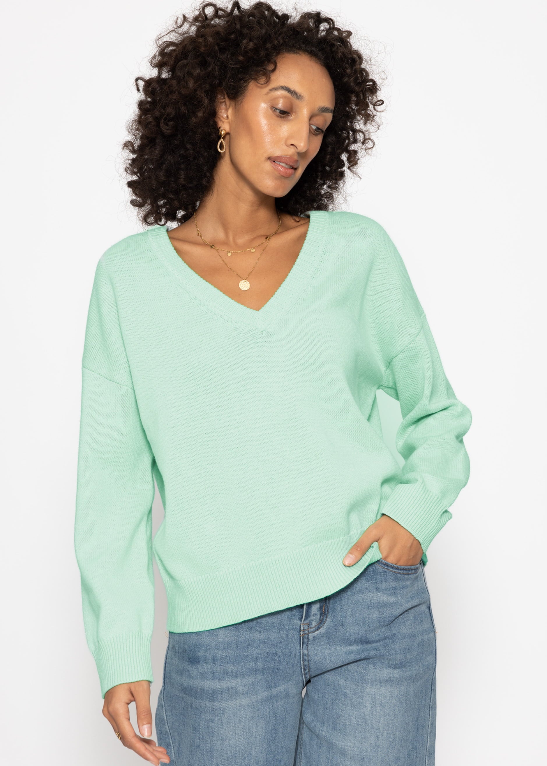 A casual pullover in soft cotton with a classic V-neck. Ribbed cuffs, neckline, and hem create a flattering shape, while the relaxed fit offers comfortable wear and a modern look – perfect for laid-back everyday styles.