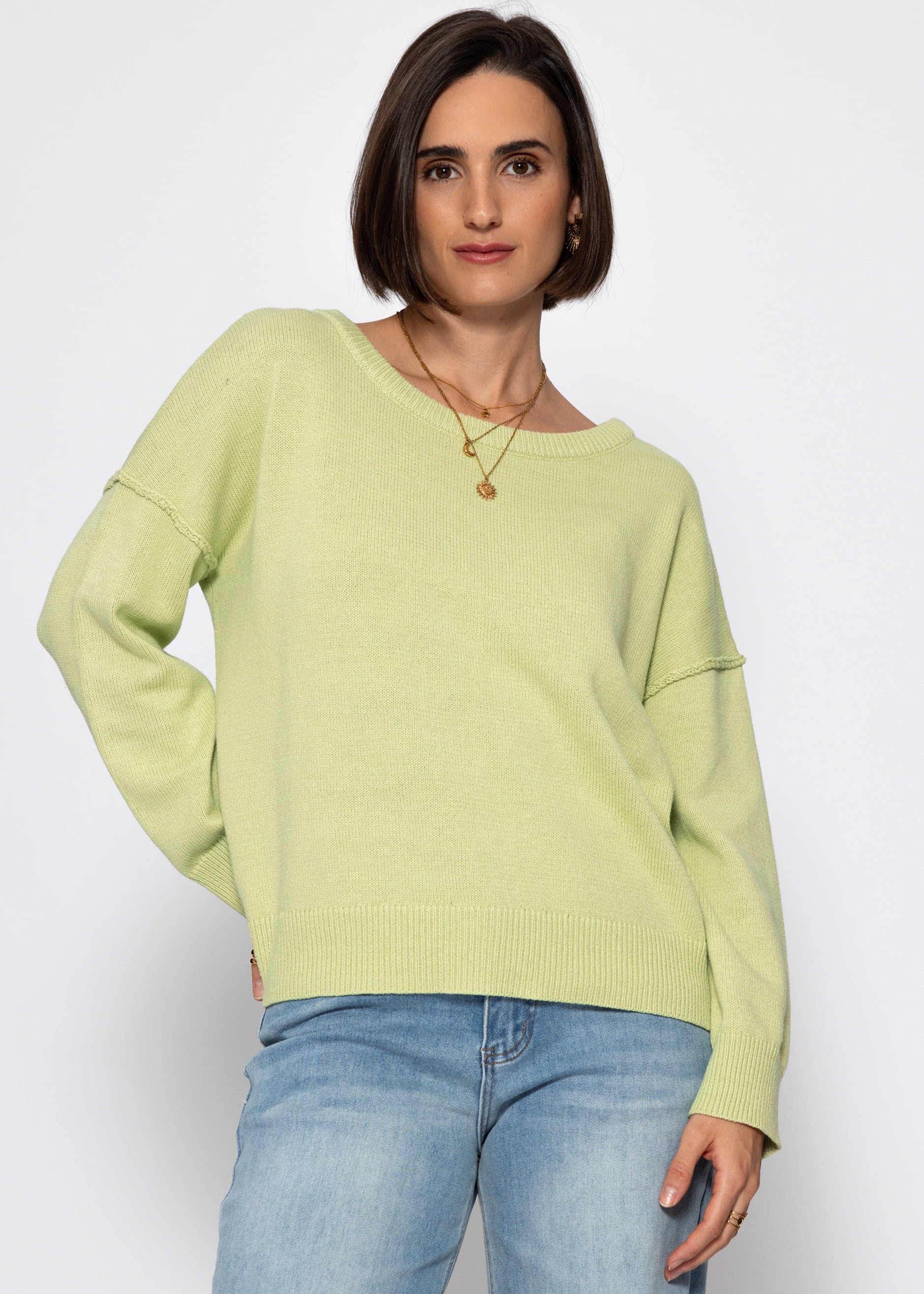 Sweater with back seam in light green