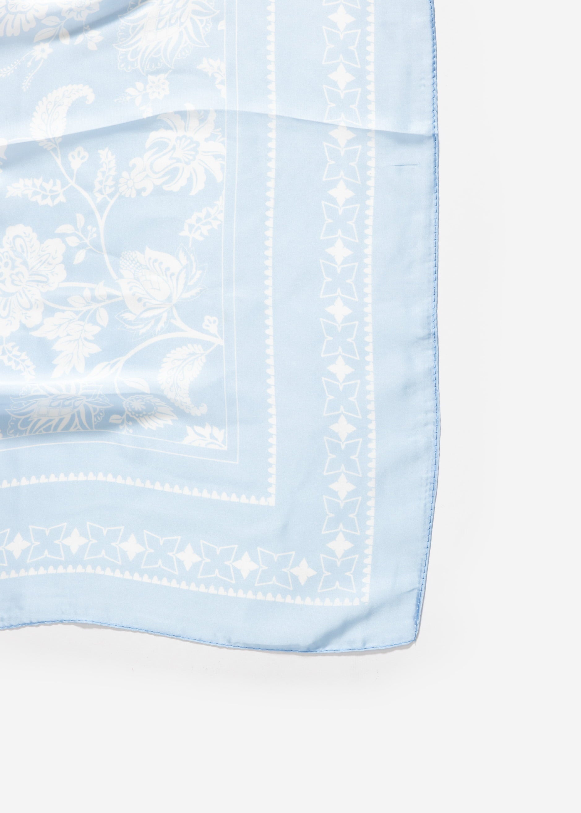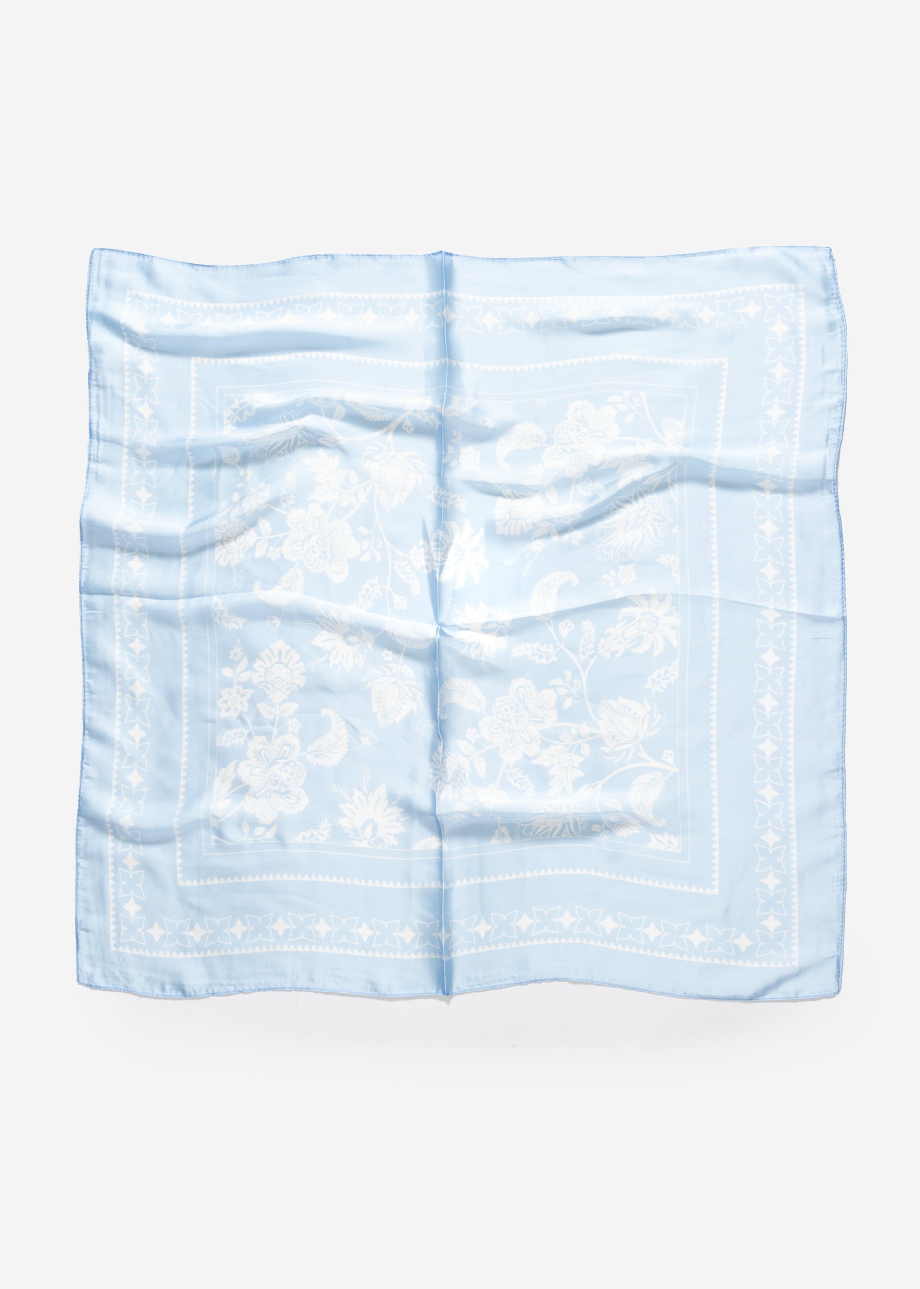 Feines Halstuch in Hellblau mit Blumen-Muster und Seidenanteil. Der glatte, leicht glänzende Stoff sorgt für eine hochwertige, elegante Optik, während der detailreiche Print dem Design eine zeitlose Note verleiht. Ein edles Accessoire mit angenehm weichem Griff.