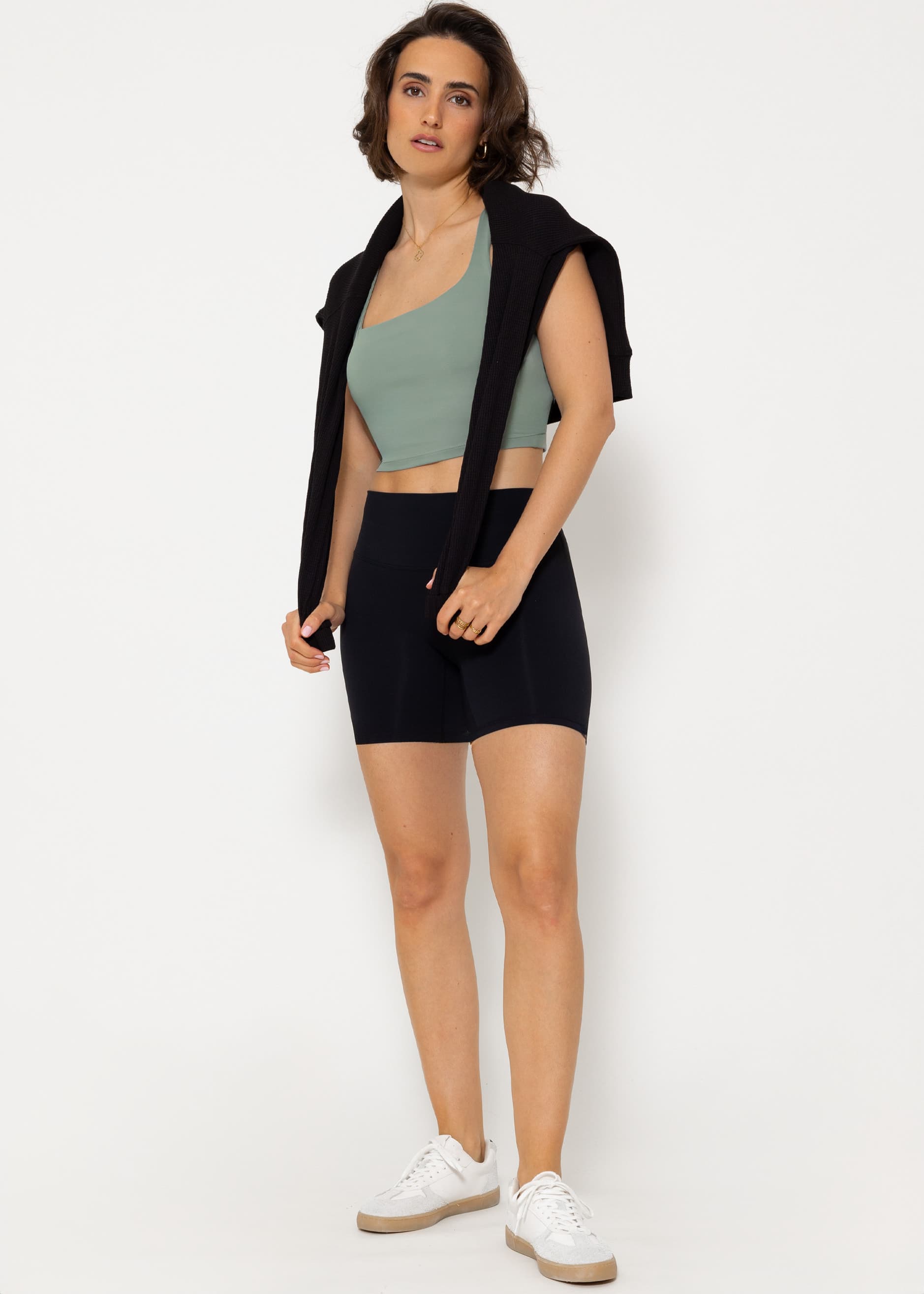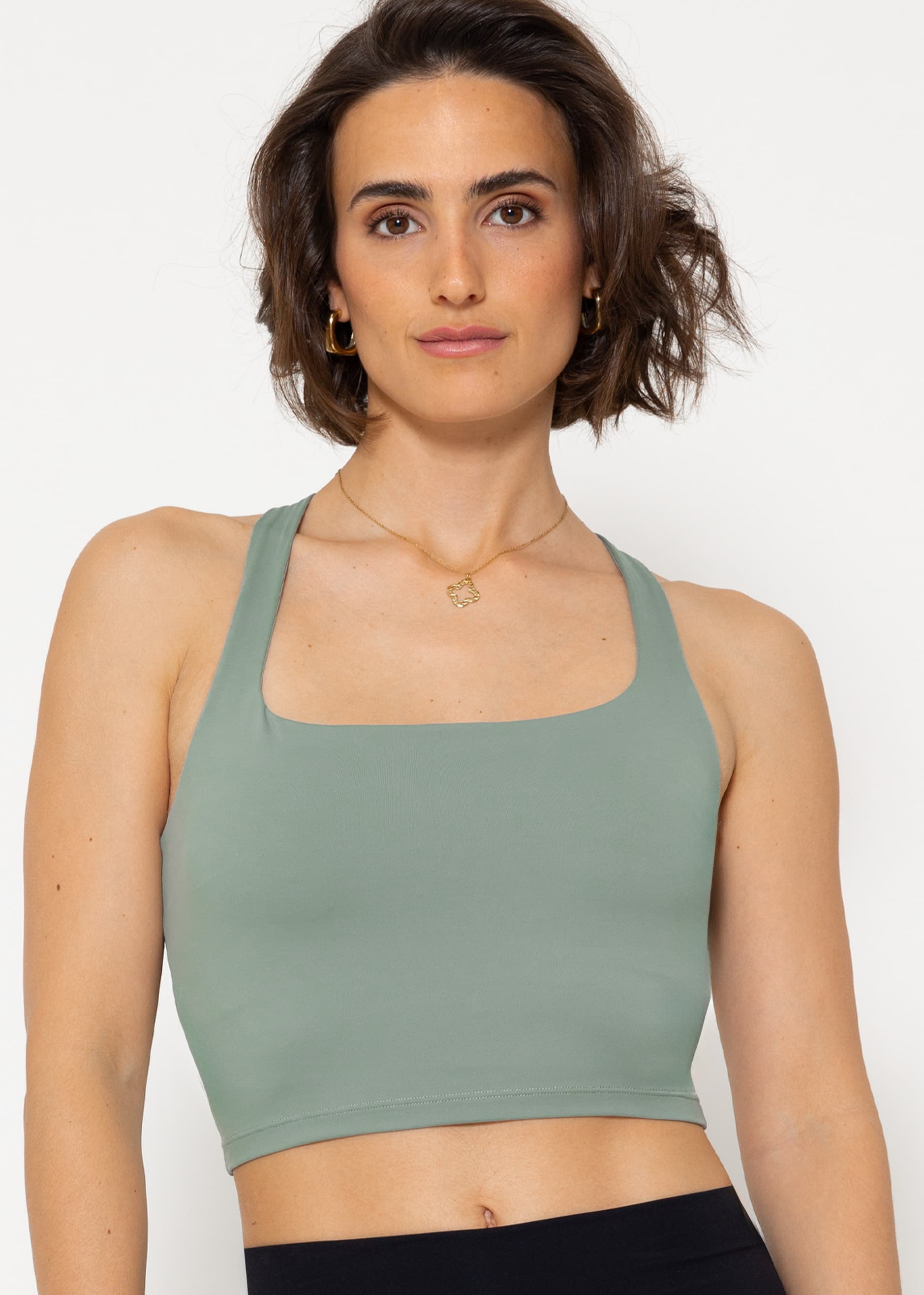 This stylish sports bra is the perfect companion for any sporting activity. Made from breathable, sweat-wicking material, it offers outstanding comfort and optimum support. The removable cups allow for individual adjustment, while the underbust band provides additional support and stability without cutting in. The underwired design allows maximum freedom of movement and prevents uncomfortable pressure points and skin irritation, so that you feel completely comfortable even during long and intensive training sessions. The unique, wide cross straps at the back not only give the bra a modern and sporty look, but also provide additional stability and even pressure distribution.