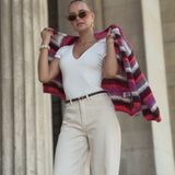 This cozy and soft knit cardigan impresses with its striking striped pattern and loose, slightly cropped fit. The voluminous sleeves and open front create a casual look, while the fluffy material provides pleasant warmth. It's ideal for layering on chilly days and pairs perfectly with jeans or dresses for a modern, relaxed style.