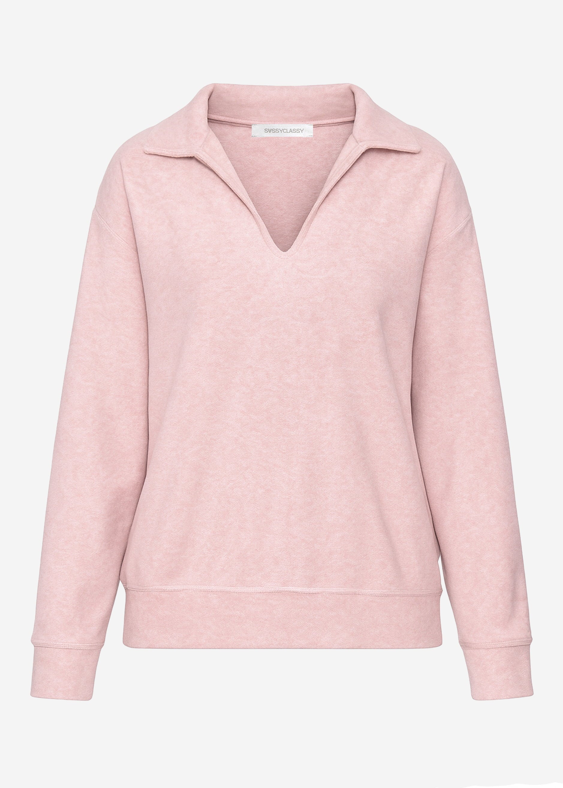 This sweater combines a fluffy feel, comfort, and a modern oversized fit to create an irresistible piece for your wardrobe. The model features a relaxed collar and a modern V-neck. Dropped shoulders give the sweater a contemporary look and allow for unrestricted freedom of movement. Cuffs on the sleeves ensure a perfect fit and complete the design. Made from a fluffy, soft material, the sweater makes you want to snuggle up in it. For a complete lounge look, pair it with the matching terry cloth pants.
